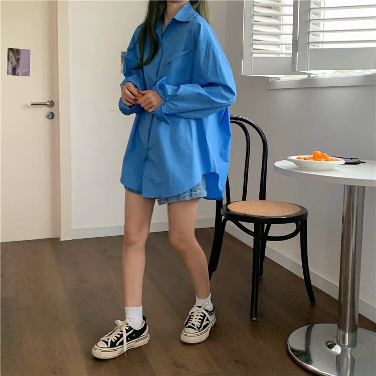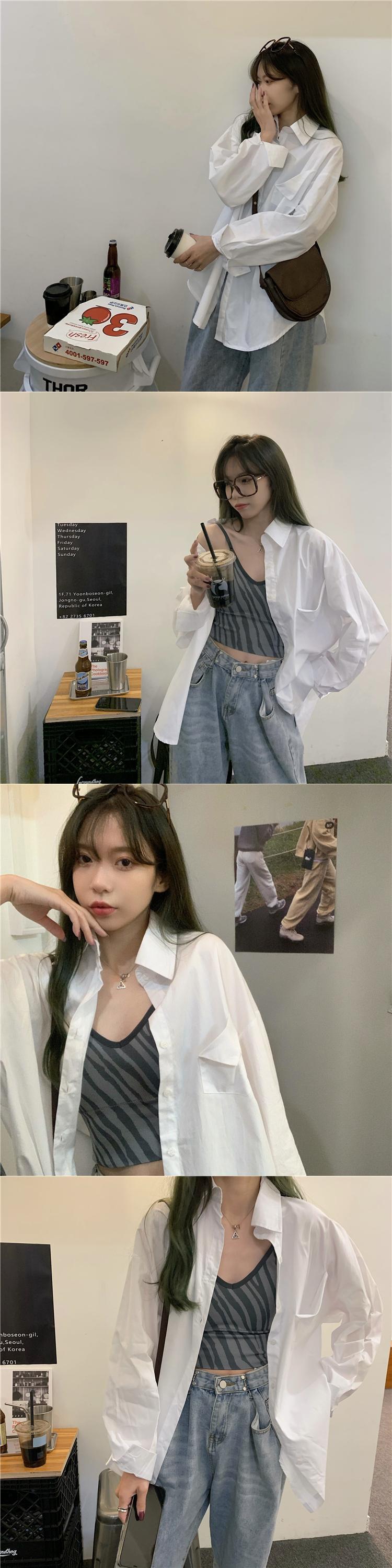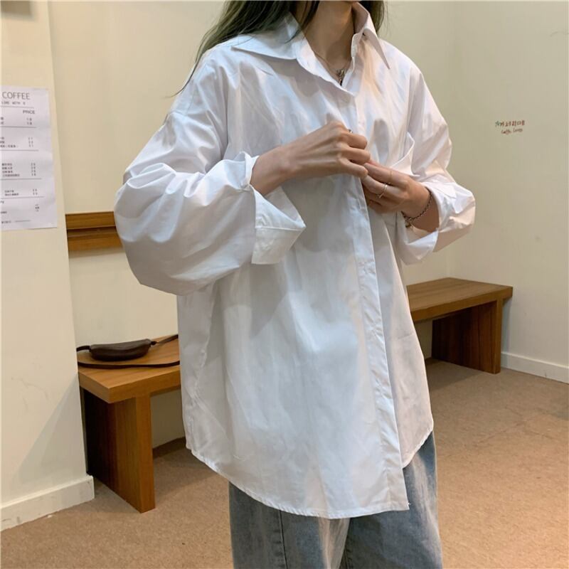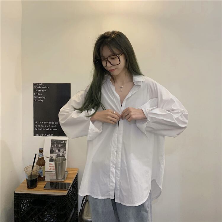 スプリングシャツ ルーズ長袖スリーブホワイト ロング 春物 コーデ Marchs20710148388