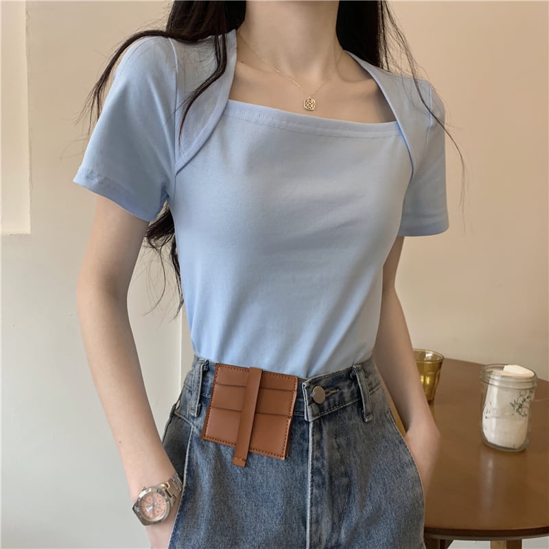 カラー夏服スリムフィットTシャツトップス 夏物 スクウェア コーデ Marchs91390785845