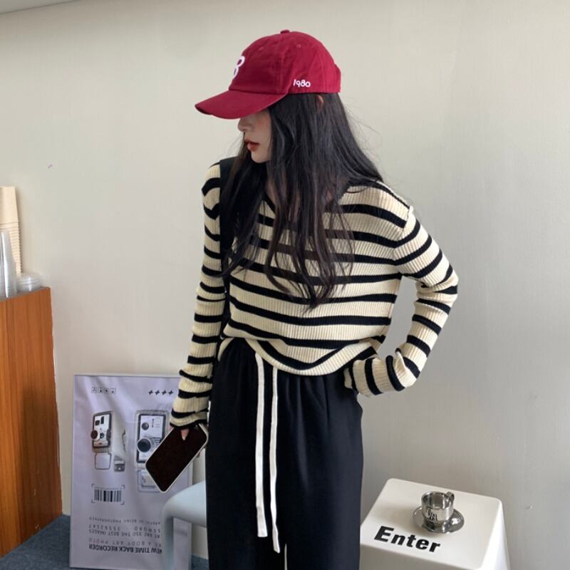 ストライプニットTシャツシャツ スプリングスタイルトップス ロング 大人ガーリー スウィート キュート カジュアル 春物 ヨーロピアン 長袖 コーデ Marchs24373855840
