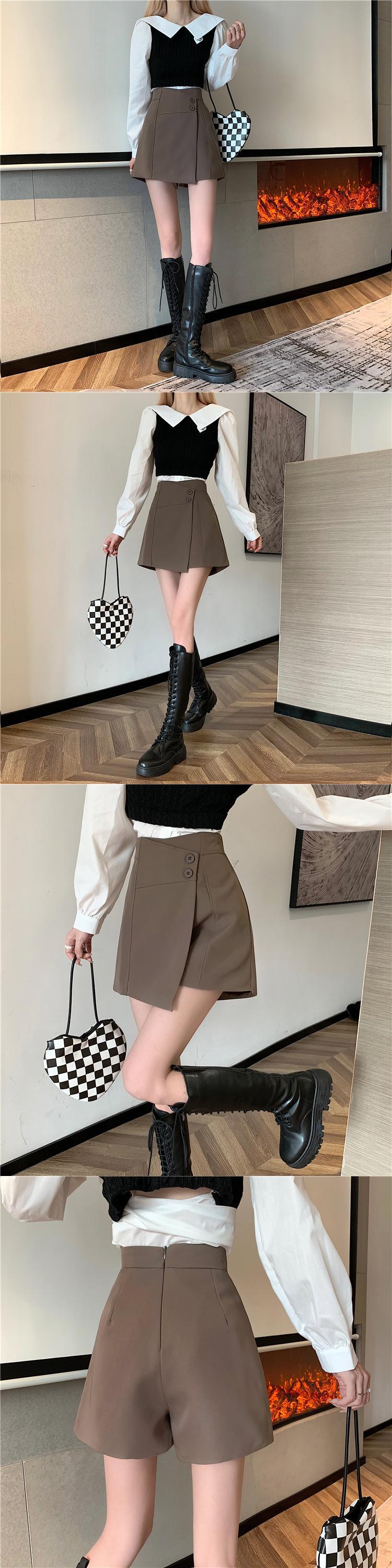 韓国ファッションNEWハイウェストウェストブラックAラインショーツ 夏服 夏物 スタイル ウエスト コーデ Marchs84347966853