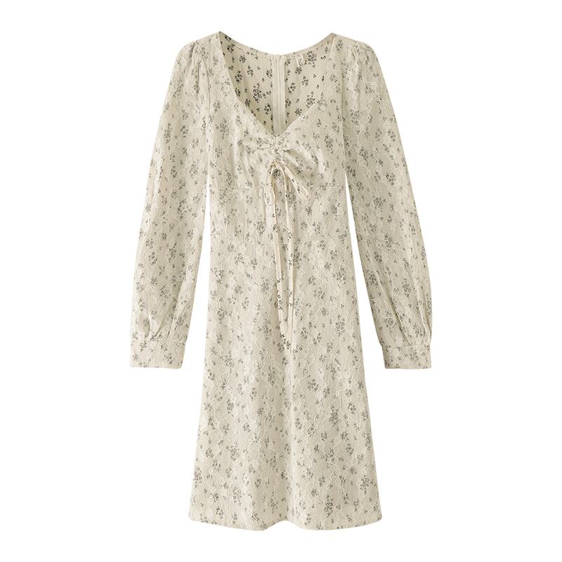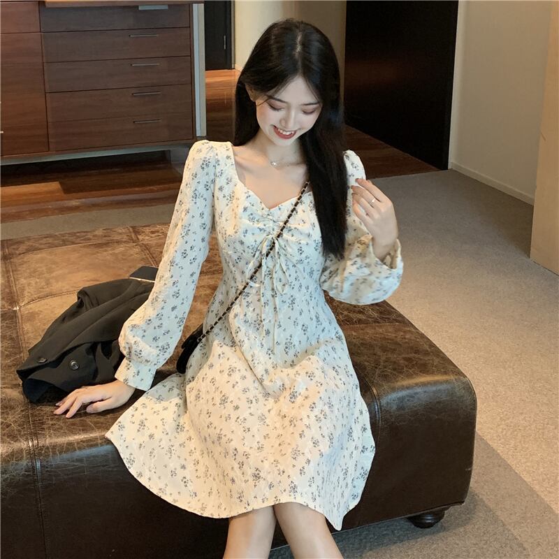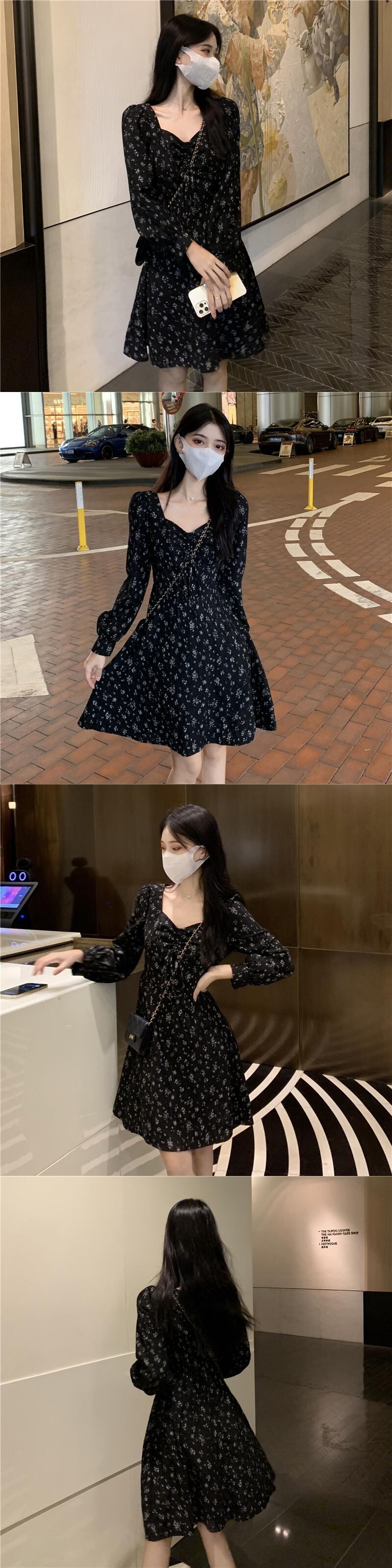 スカート カラーブラック長袖スリーブフローラルショート秋物ワンピース ロング ストリート オータム 花柄 スクウェア コーデ Marchs59746729573
