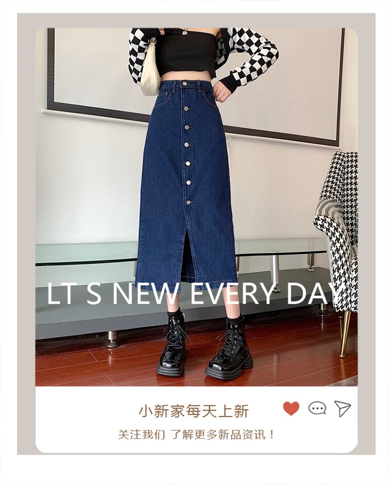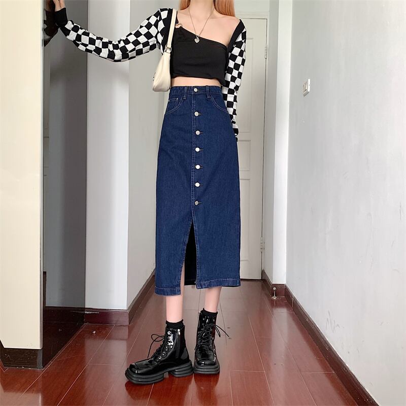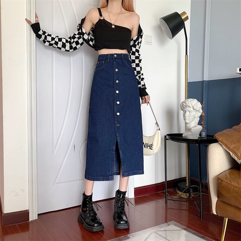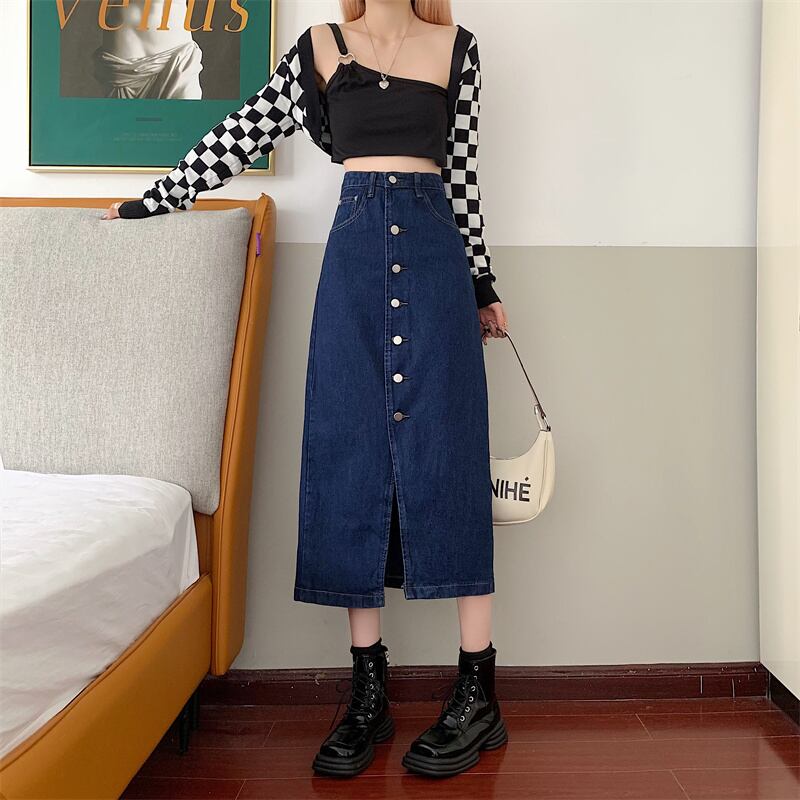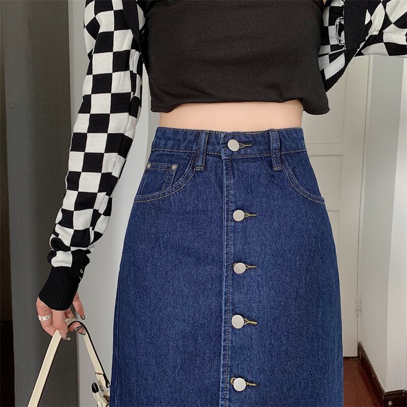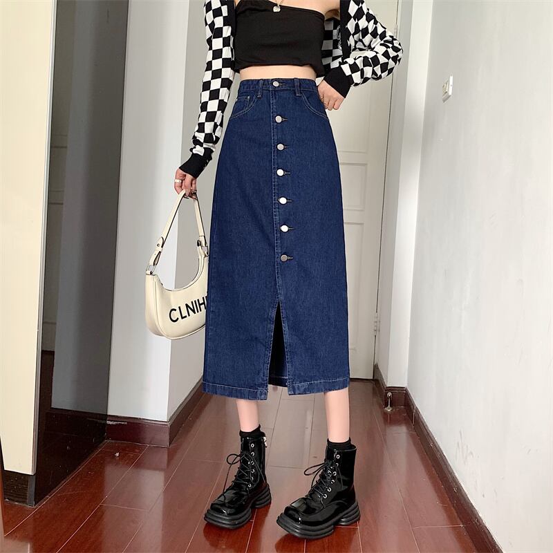 ブルースカート スプリングハイウェストウェストボタンスリット 春物 ウエスト ミドル丈 コーデ Marchs66955948548