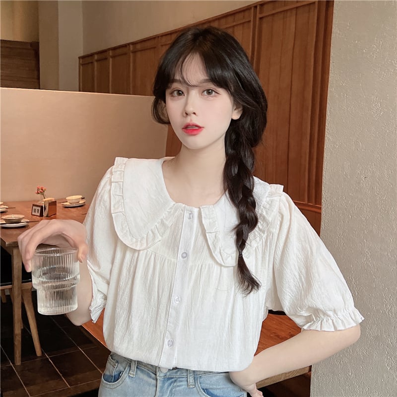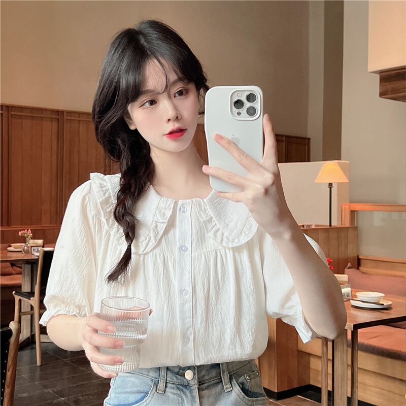 カラーホワイトシャツ 夏服トップス 大人ガーリー スウィート キュート カジュアル 夏物 コーデ Marchs52663307934