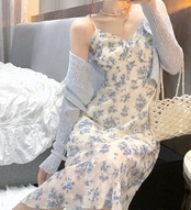 ワンピース夏服薄手スタイルブルーフローラル 大人ガーリー スウィート キュート カジュアル 夏物 花柄 コーデ Marchs57769797917