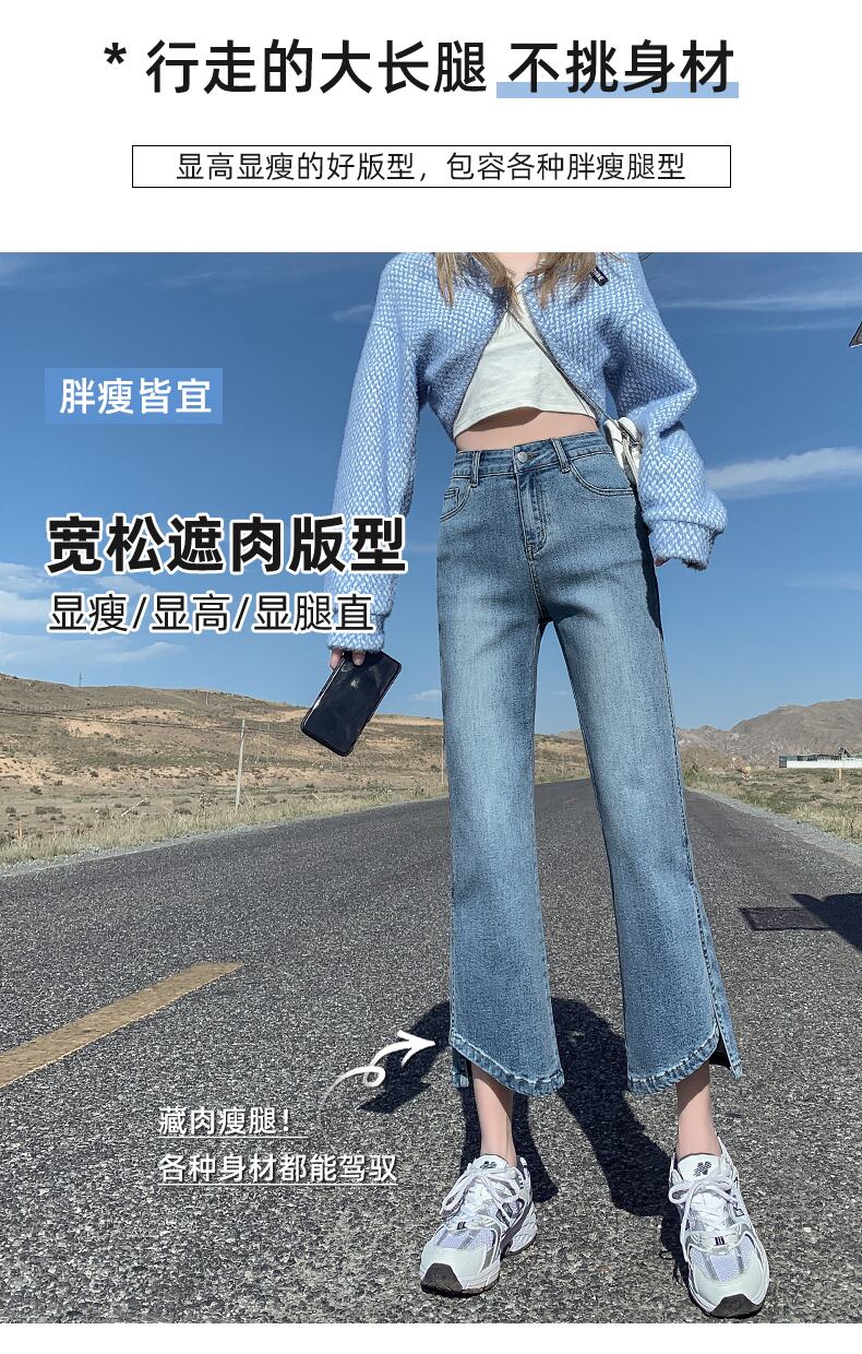 ジーンズ 夏服スタイルスリットハイウェストウェストワイドレッグ 夏物 ワイドパンツ ウエスト コーデ Marchs14228556664