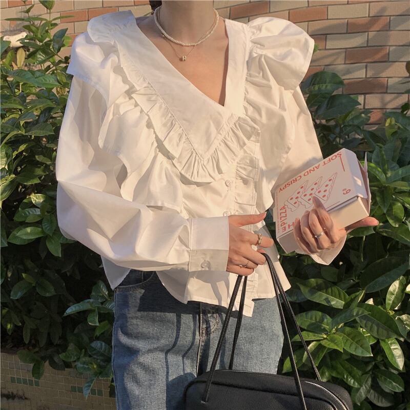 Vネックホワイトシャツ ウェストショートトップス スプリングスタイル レッド 春物 ウエスト コーデ Marchs59445685588