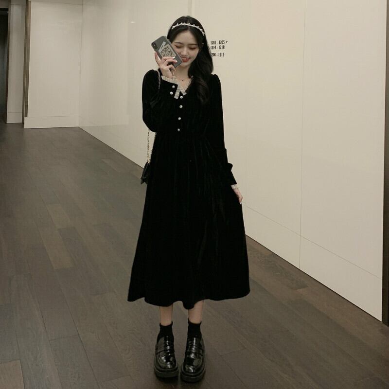 コート スタンダードスタイルブラックワンピースゆったりゴールド厚みスプリング ロング レトロ 春物 長袖 コーデ Marchs57598197333