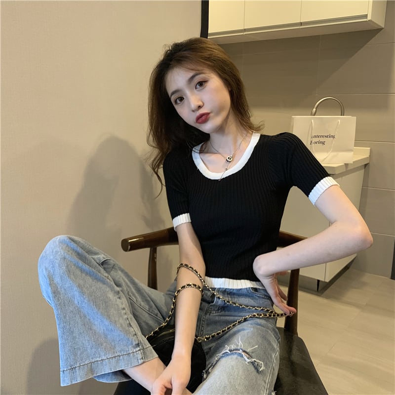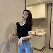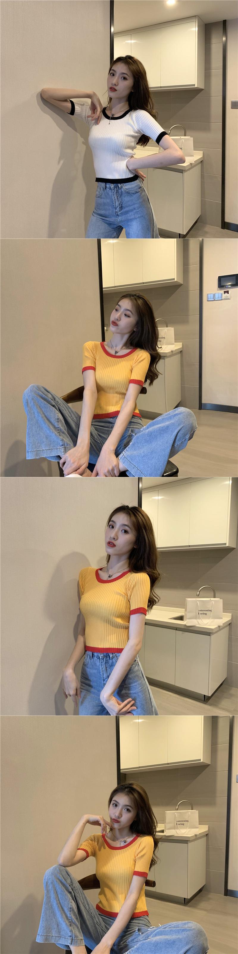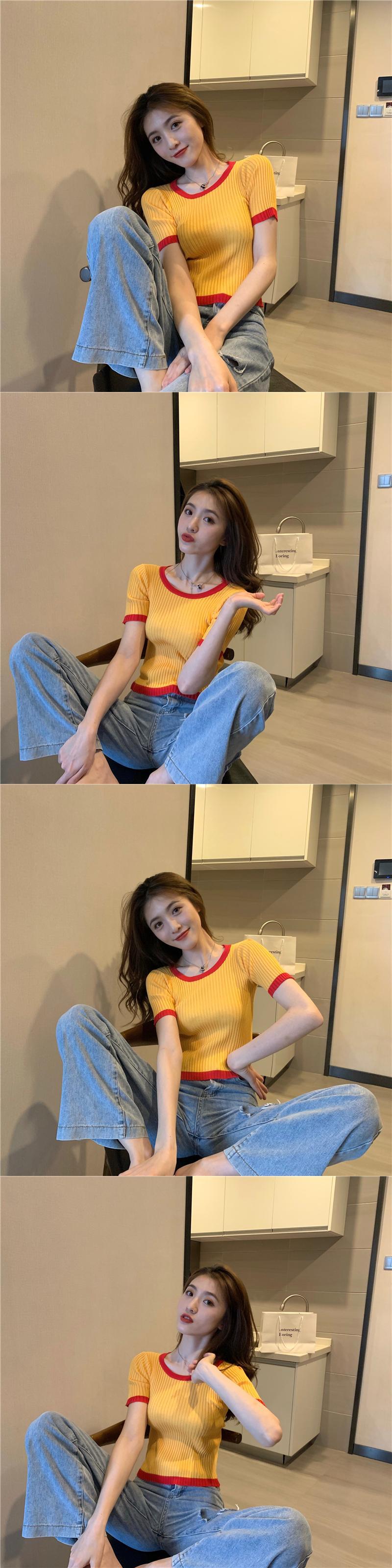 ゆったりシャツ 夏服カラーハイウェストニットトップス NEWショートTシャツ 夏物 ウエスト コーデ Marchs65896062658