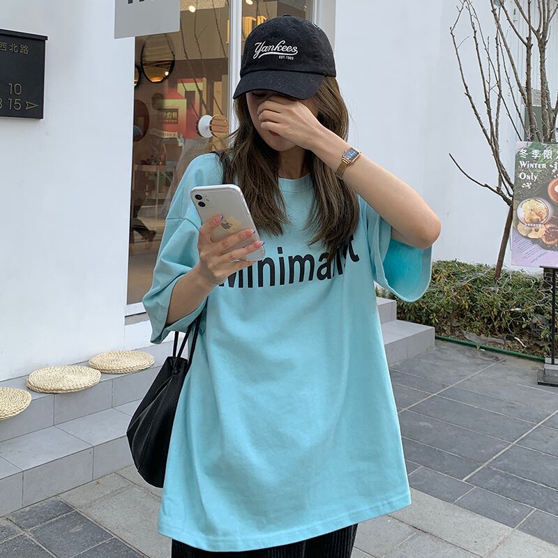 グリーンTシャツ夏服ルーズ薄手プリントトップス 夏物 コーデ Marchs30854749948