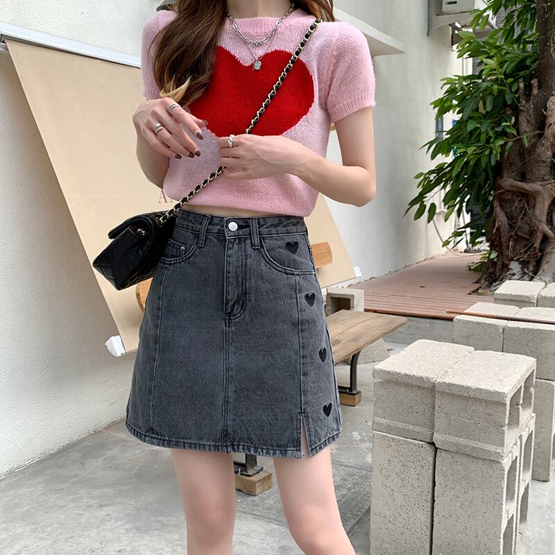 スタンダード刺繍スカート スプリング秋物ハイウェストウェストAラインショート レトロ 春物 オータム ウエスト コーデ Marchs90458682246