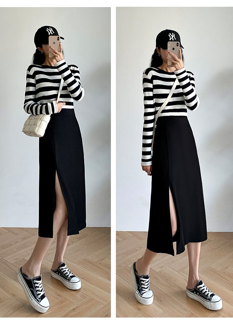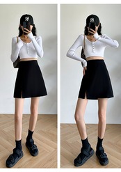 ブラックスカート スプリング秋物スタイルスリムAラインハイウェストウェストルーズミディ 春物 オータム ウエスト コーデ Marchs19866362568