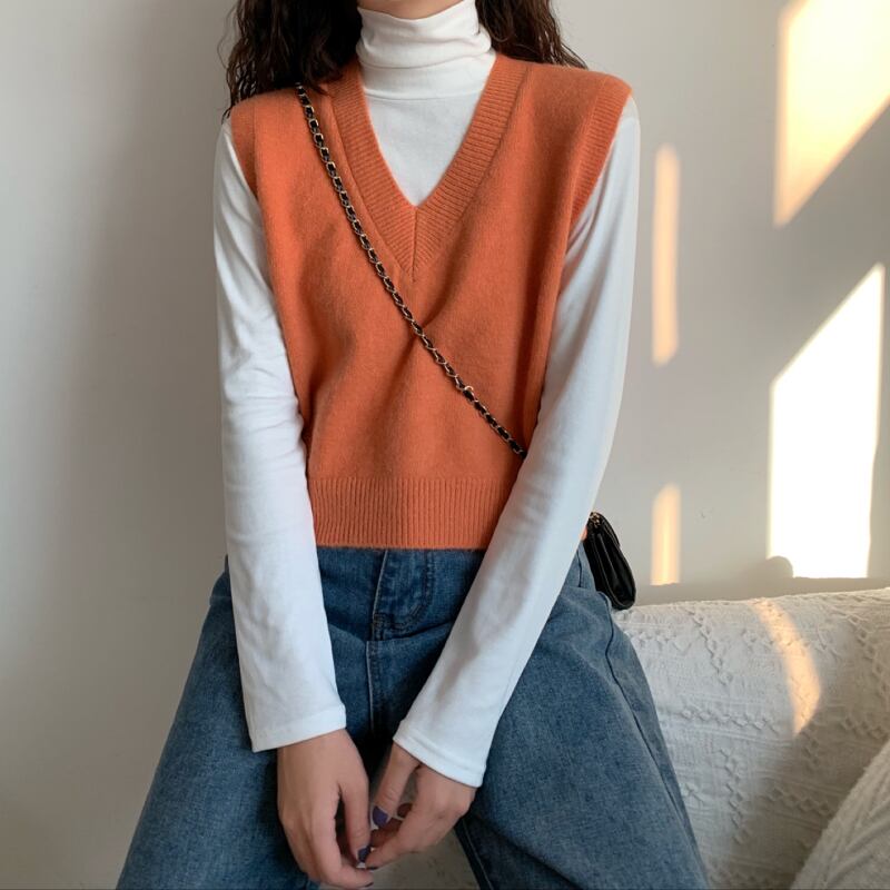 オレンジセーター コート スプリング秋物Vネックショートニット 春物 オータム ウエスト コーデ Marchs66628535199