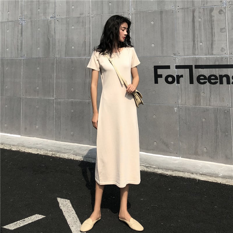 ニットワンピーススプリング秋物ルーズゆったりTシャツスカート 春物 オータム シルク ミドル丈 コーデ Marchs96649465997