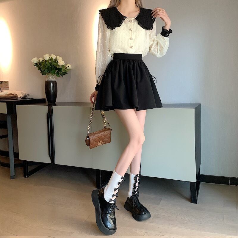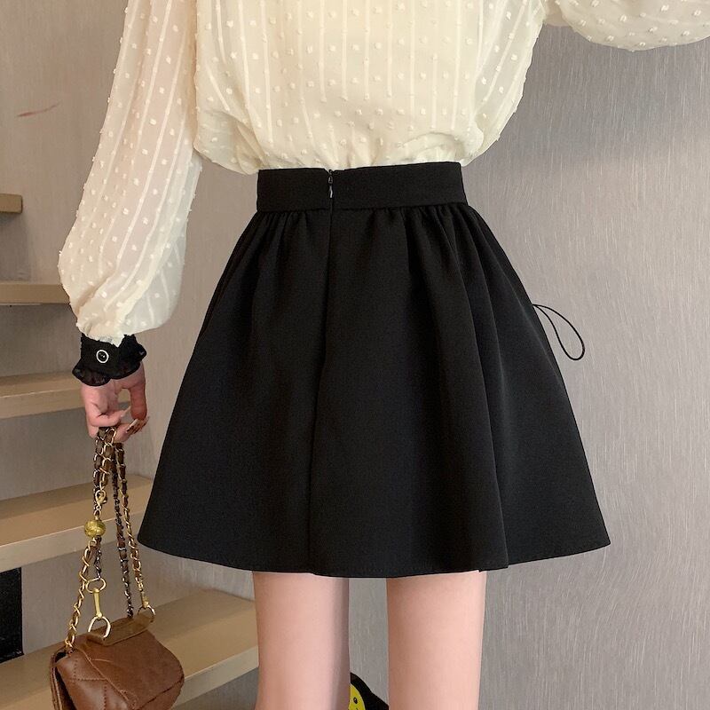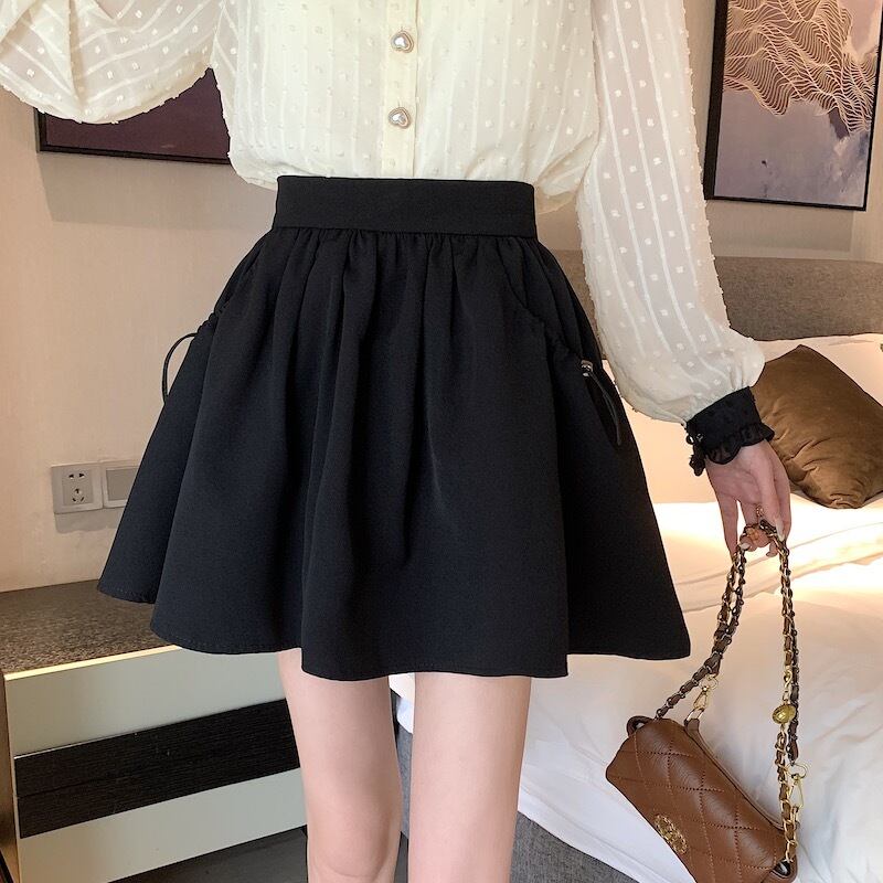 ブラックFlowerデザイン スカート 夏服ハイウェストウェストAライン薄手 ふわふわ 夏物 フラワーデザイン ウエスト コーデ Marchs18613684868