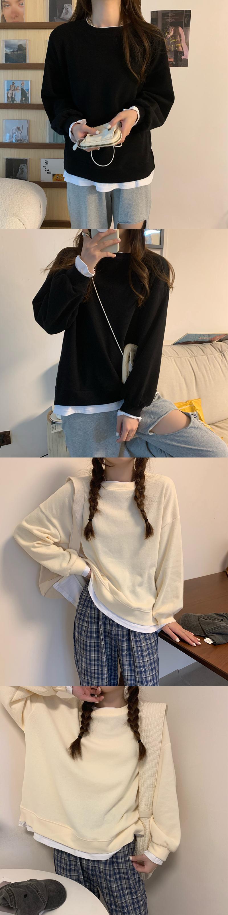 スプリング秋物韓国ファッションソリッド カラールーズプルオーバー セーター トップス ロング 春物 オータム ソリッドカラー ステッチ スタイル 長袖 コーデ Marchs86229731630