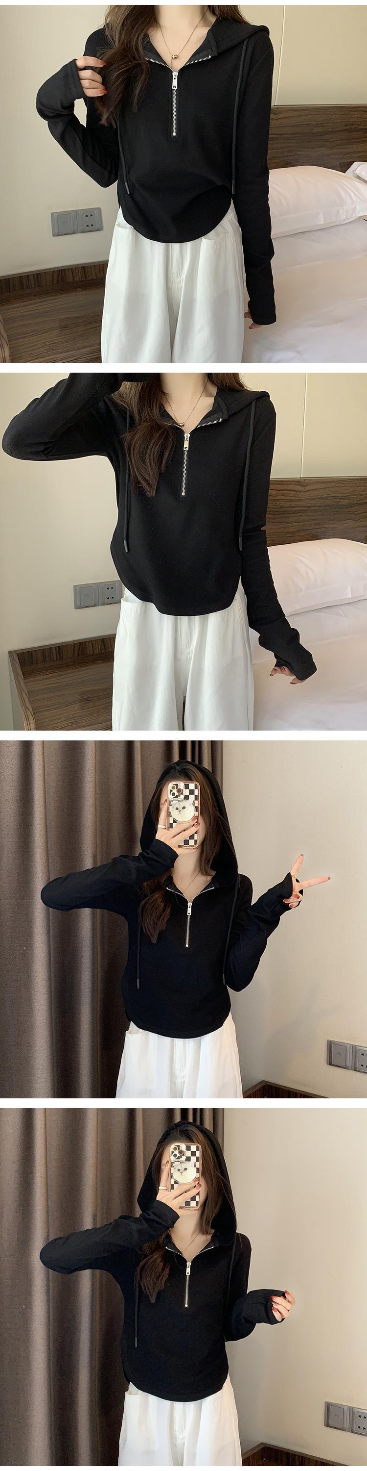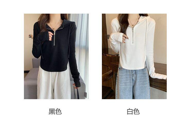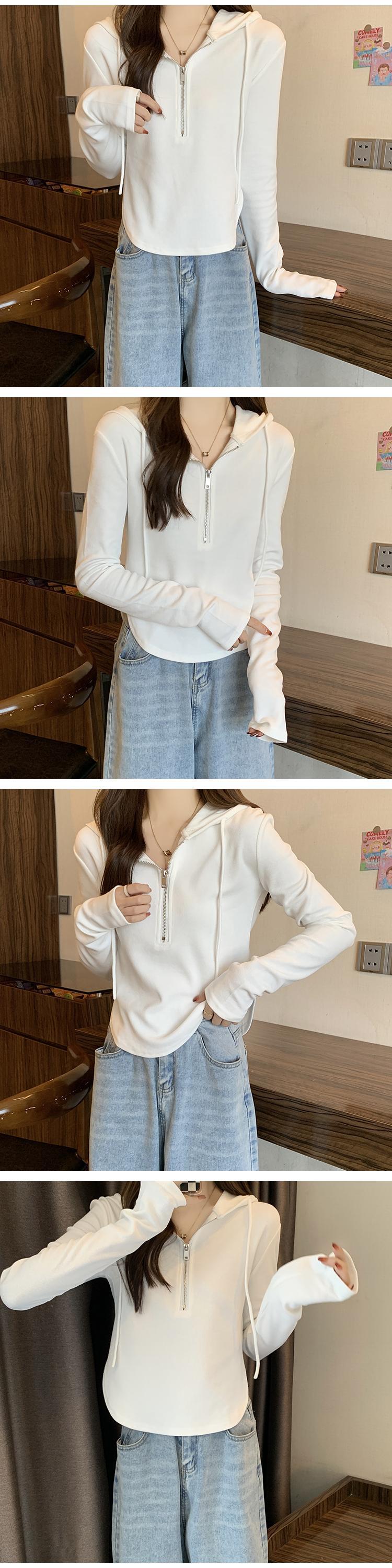 フードショートセーター スプリング韓国ファッション薄手ジッパートップス ロング 春物 スタイル 長袖 コーデ Marchs39493900801