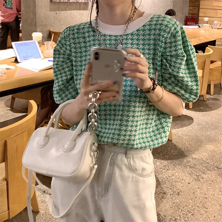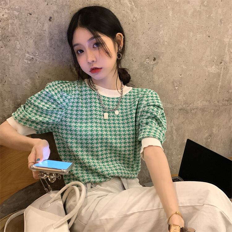 ニットショートスリーブ薄手Tシャツ夏服ラウンドネックトップス 大人ガーリー スウィート キュート カジュアル 夏物 Oネック コーデ Marchs90783402284