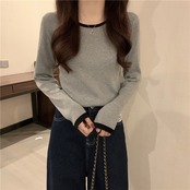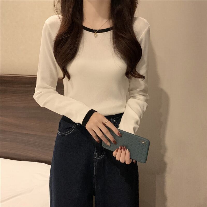カラースリムTシャツシャツ スプリング秋物薄手セーター ゆったりニットトップス ロング 春物 オータム 長袖 コーデ Marchs33652357460