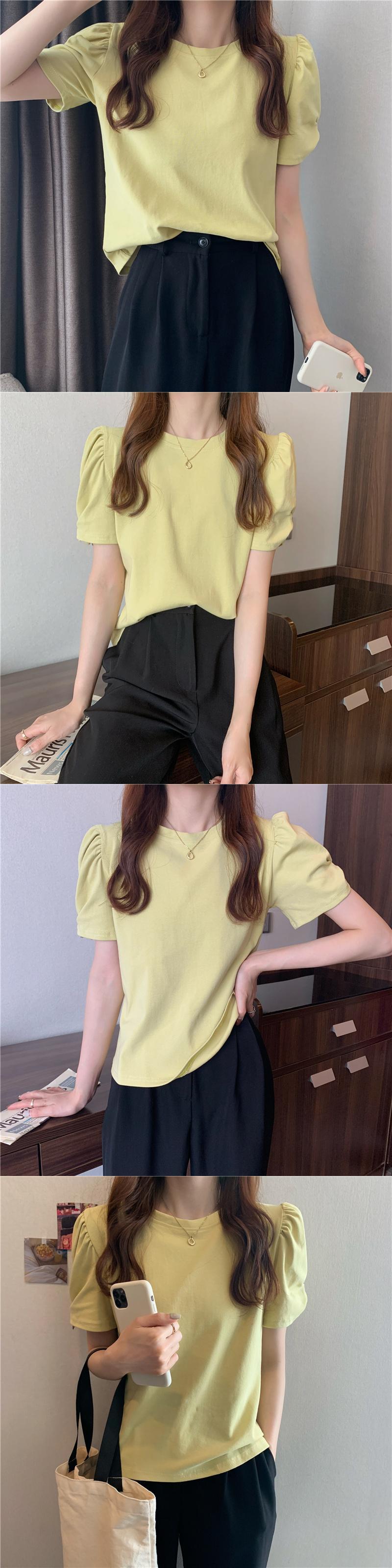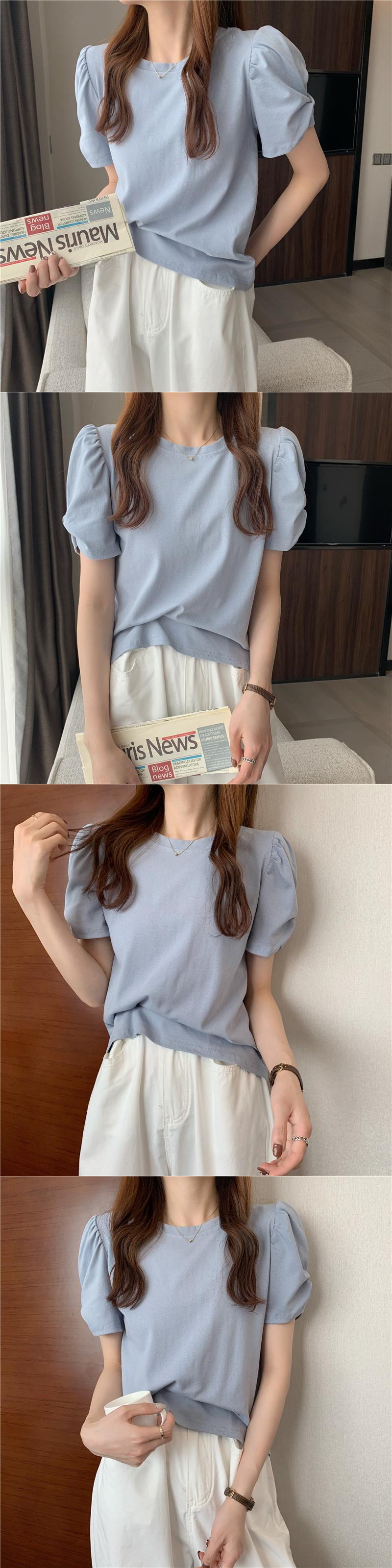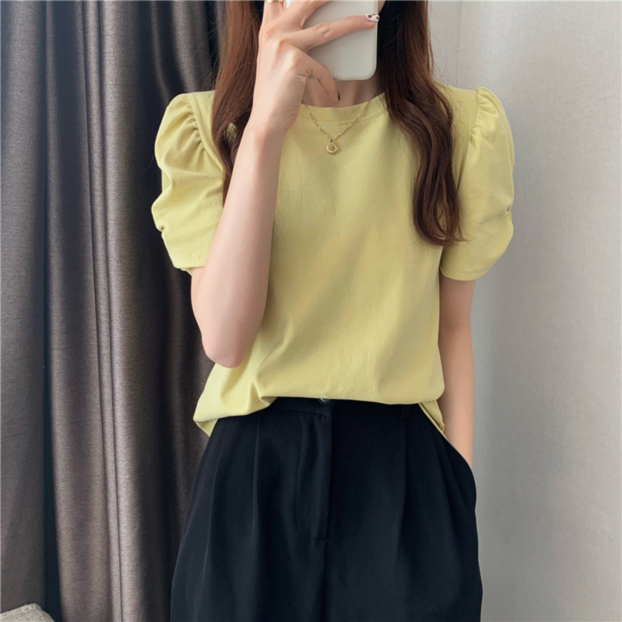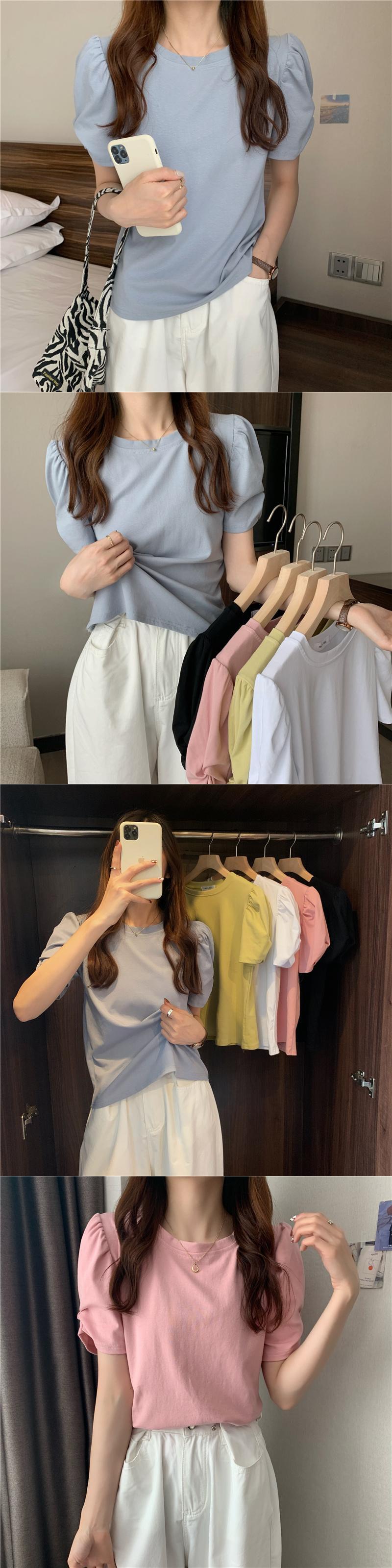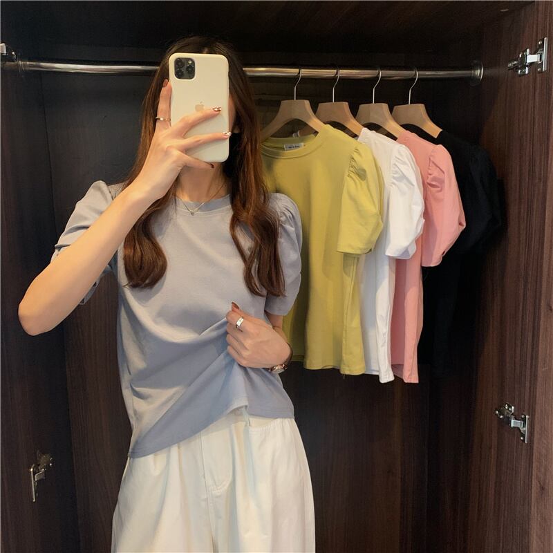 ブルースリーブトップス 夏服ラウンドネックTシャツ 大人ガーリー スウィート キュート カジュアル 夏物 Oネック コーデ Marchs41407568958