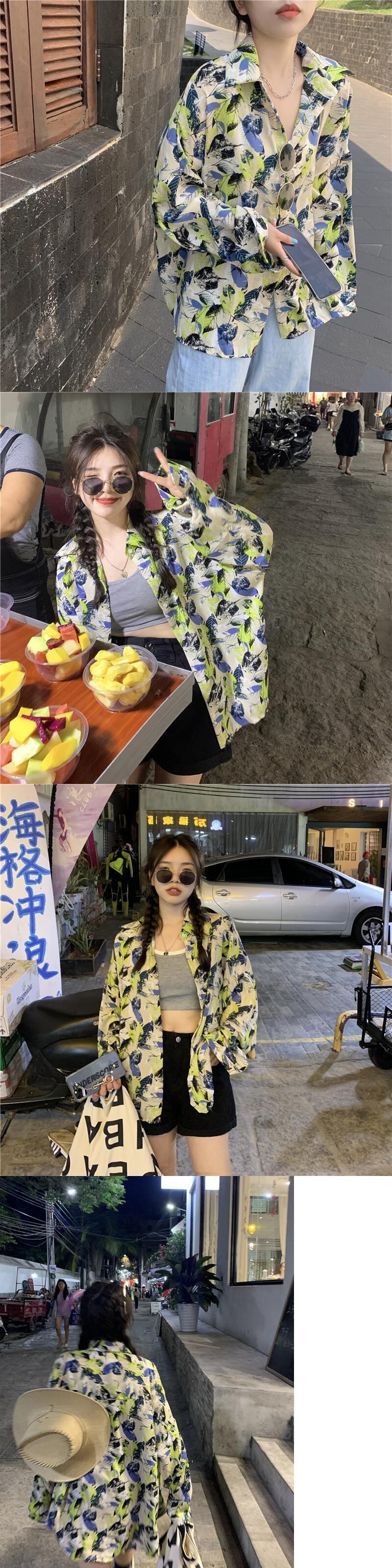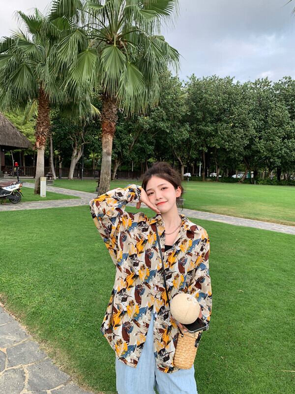 スタンダードフローラルシフォンシャツ 夏服薄手ルーズカジュアル レッド レトロ 夏物 花柄 コーデ Marchs73590287978