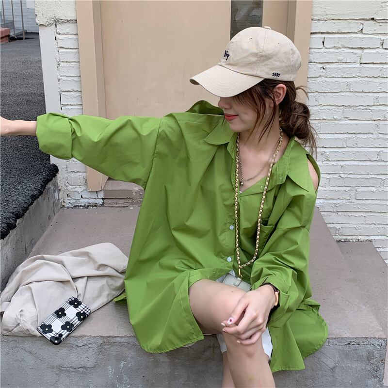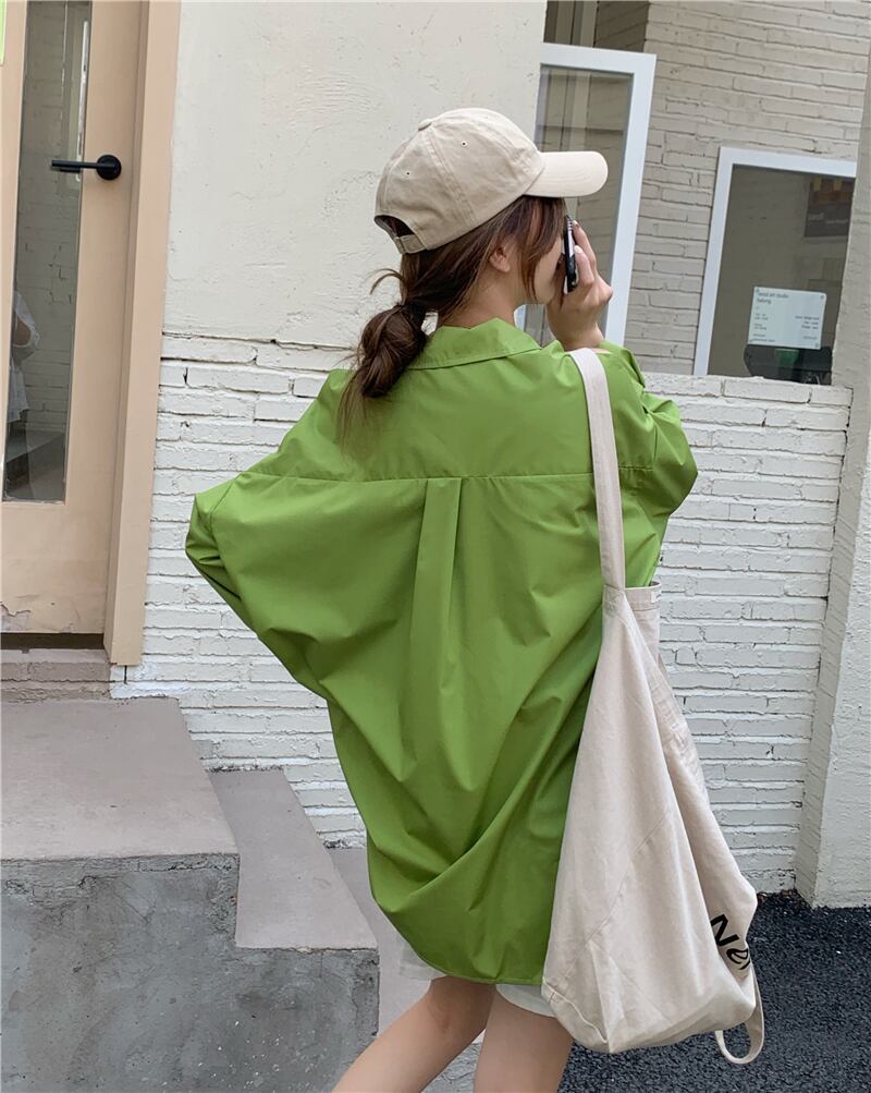 スプリンググリーンシャツ スタイルスタンダードトップス ロング レトロ 春物 長袖 ミドル丈 コーデ Marchs10026182958