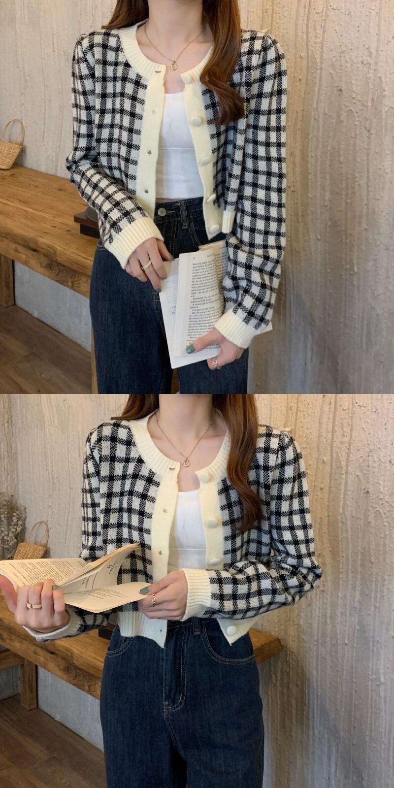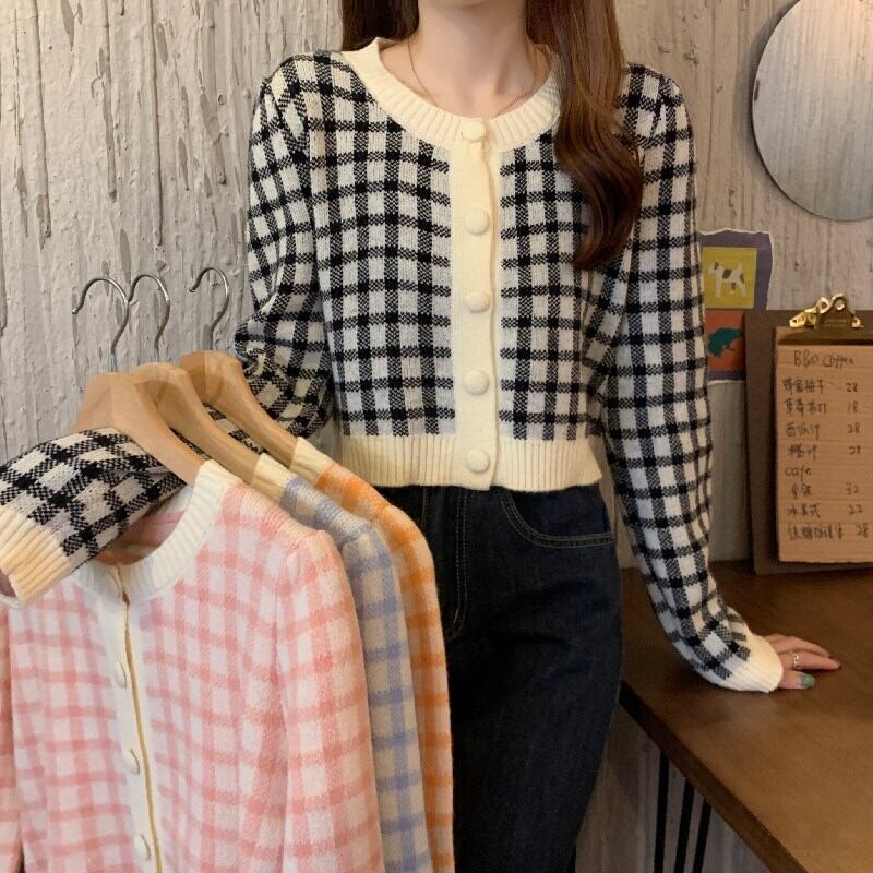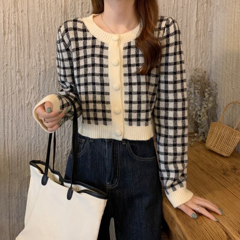 セーター コート カーディガンショートゆったり夏服格子柄 ロング 夏物 長袖 コーデ Marchs91676076079