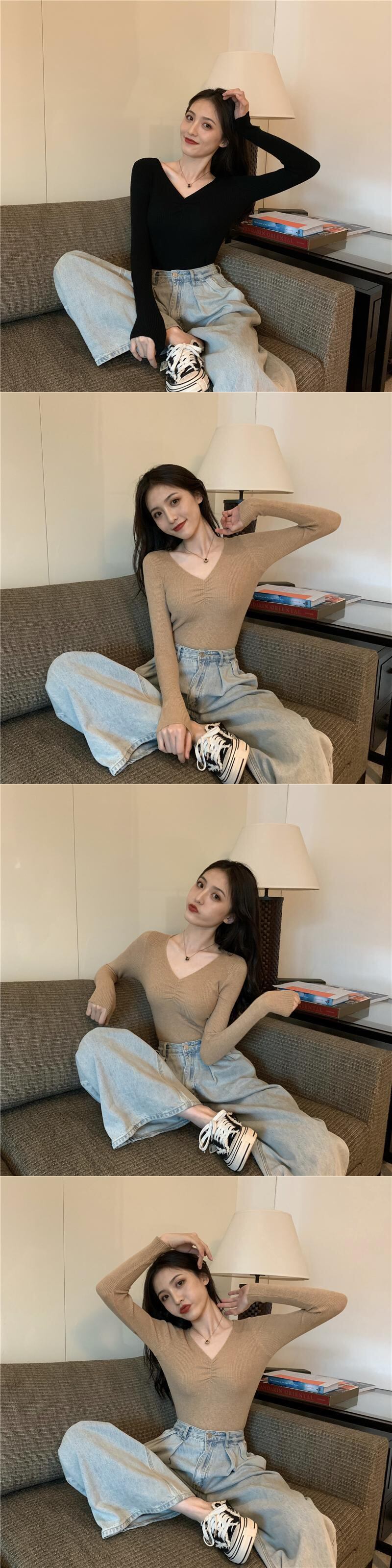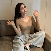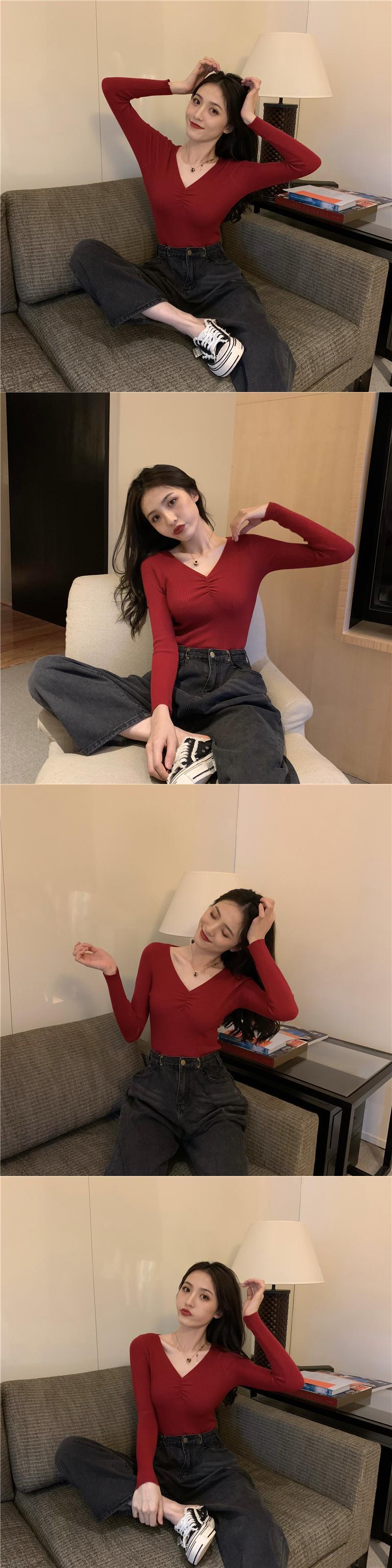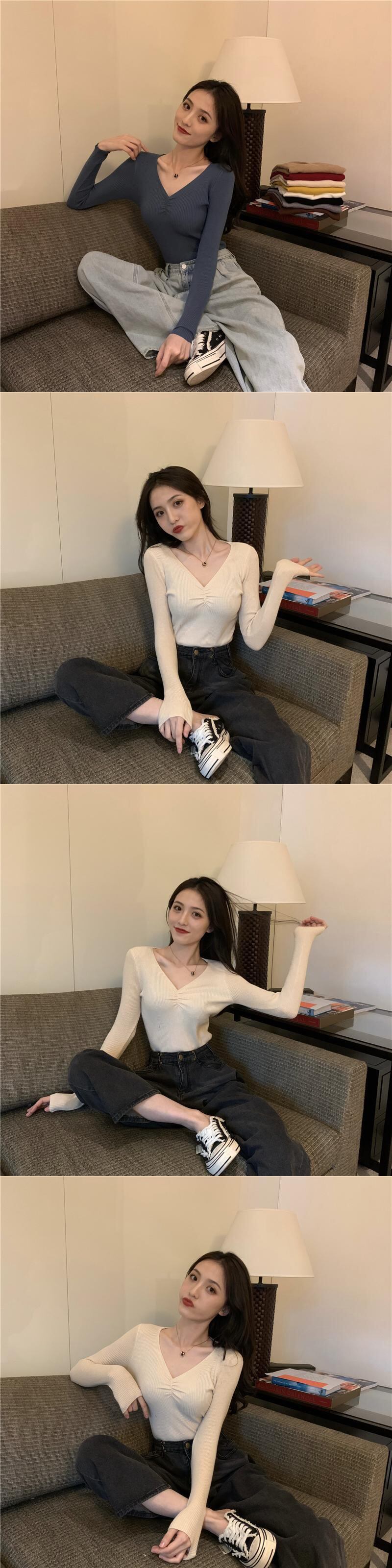 Vネックニットゆったりシャツレディース コーデ Marchs99074331091