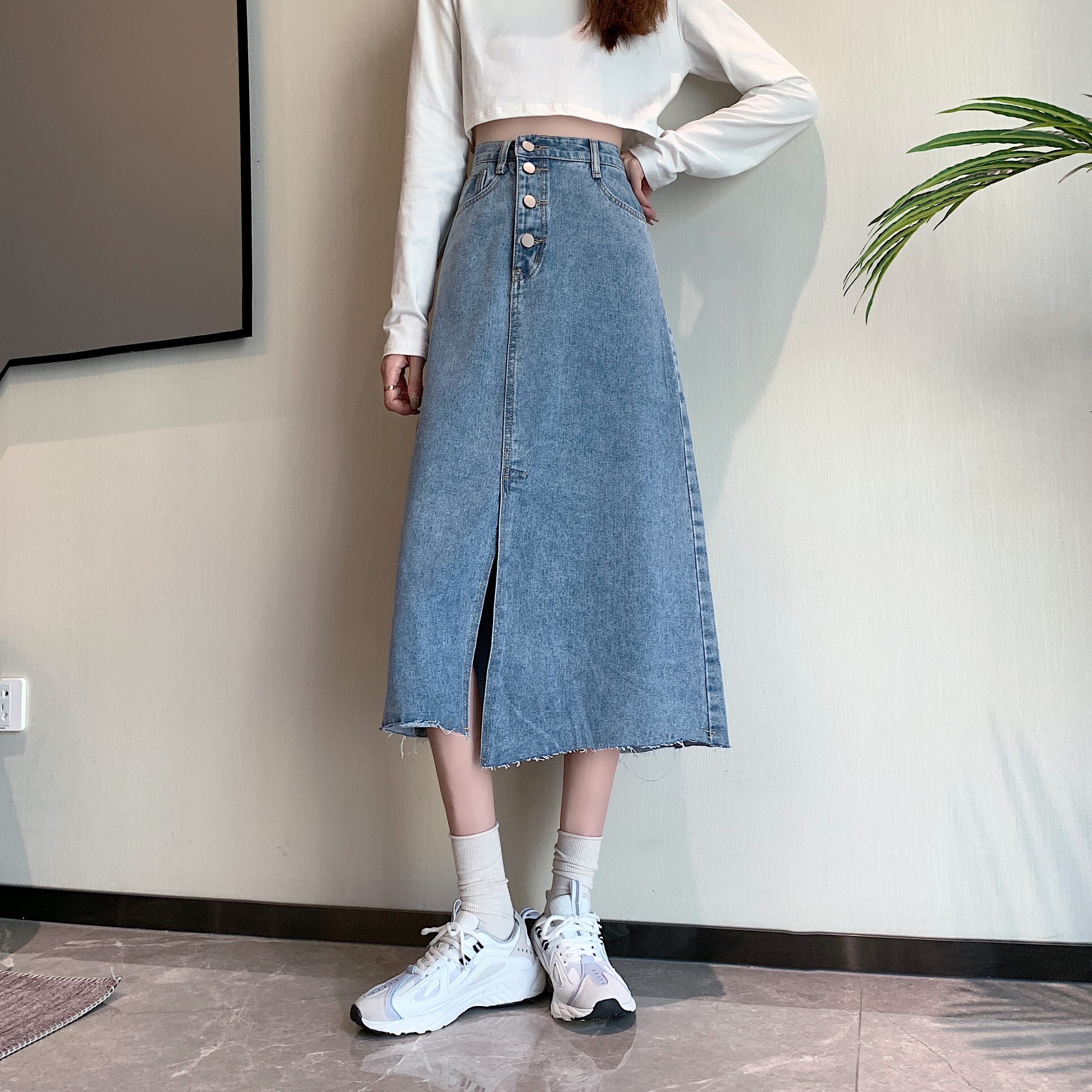 スカート スプリングハイウェストウェストAライン 春物 ウエスト ミドル丈 コーデ Marchs58754090032
