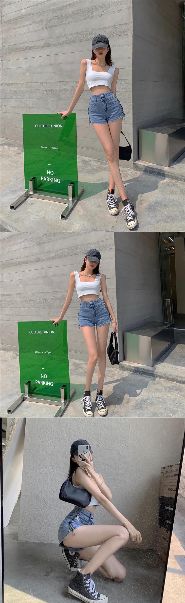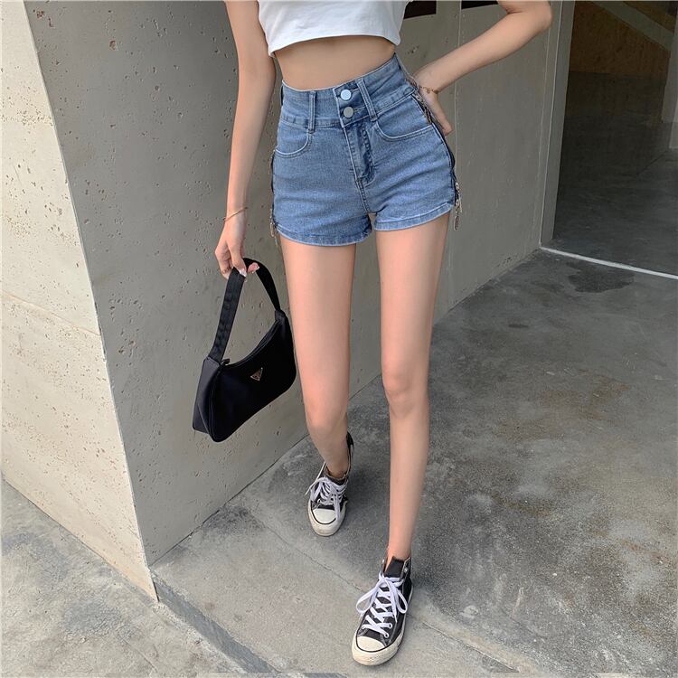 サイドジッパースリットパンツ ハイウェストNEWショーツ レディース夏服 レッド 夏物 ウエスト コーデ Marchs71759100051
