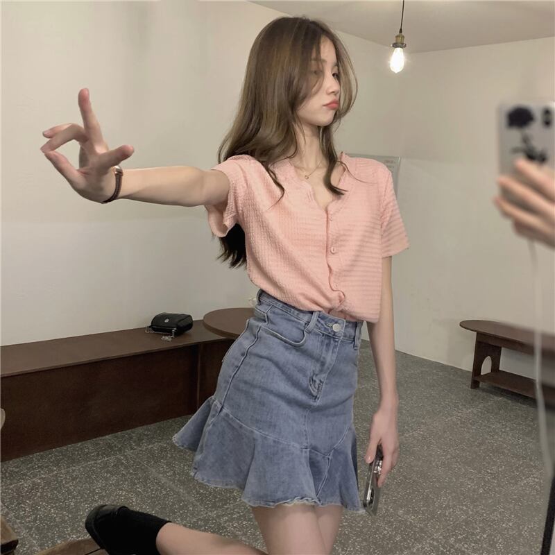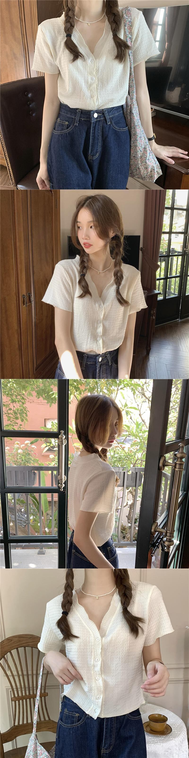 夏服シャツ Vネックプリーツシフォントップス コート 夏物 コーデ Marchs61761447415