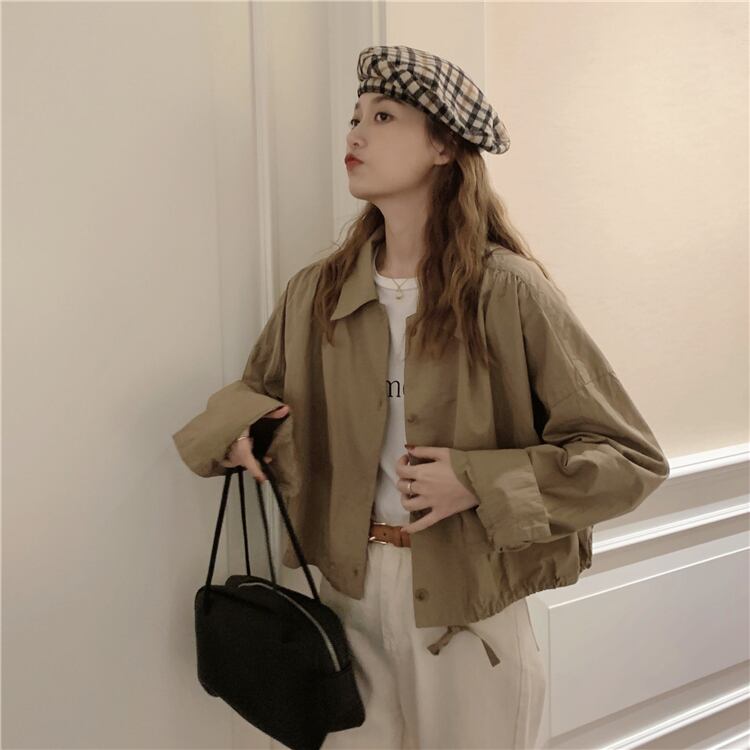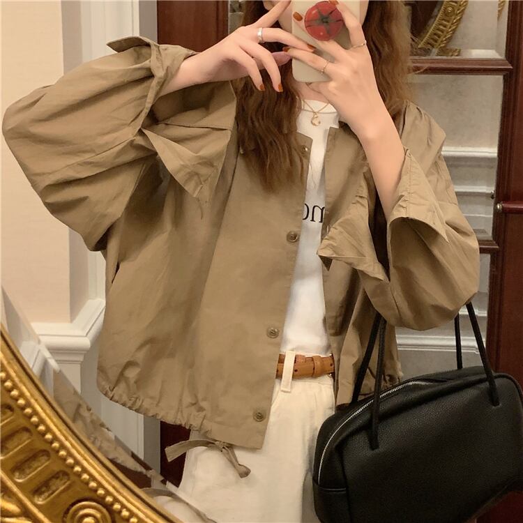 カーキギャザーシャツ スプリング秋物ショートコート ルーズトップス 春物 オータム コーデ Marchs13466675015
