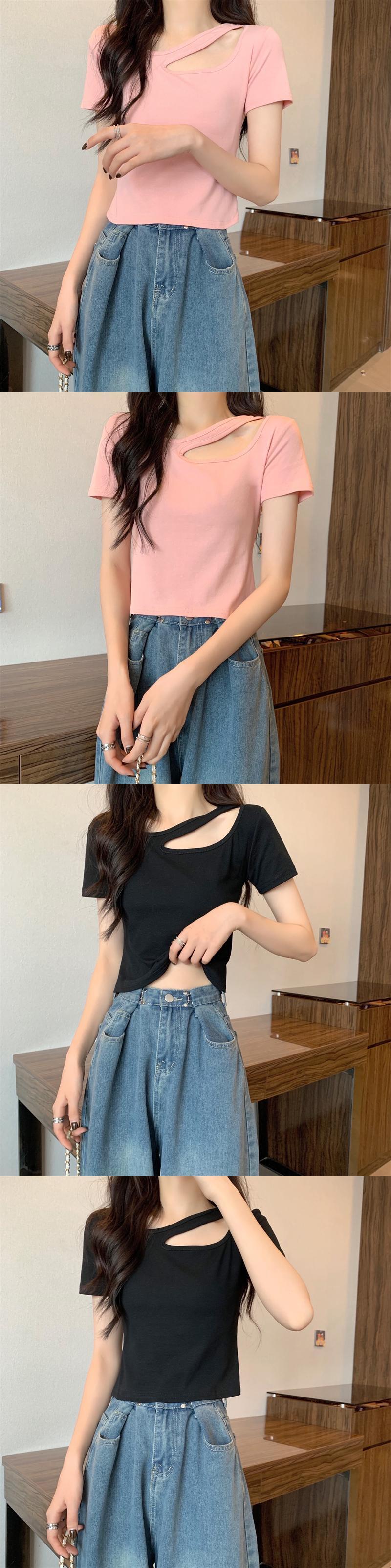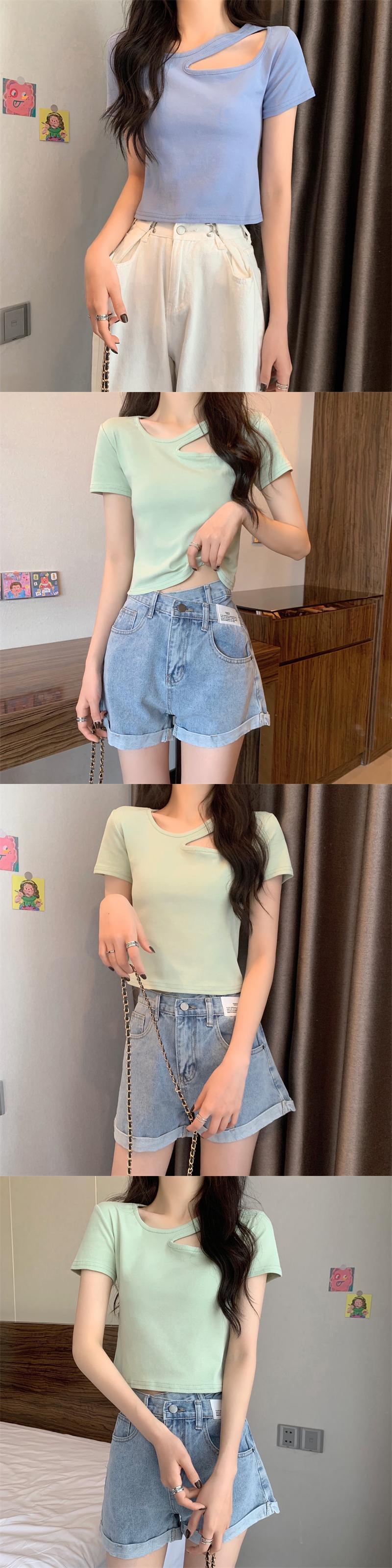 スリムトップス 夏服ショートNEWハイウェストウェストブルーTシャツ 夏物 ウエスト コーデ Marchs33263852786