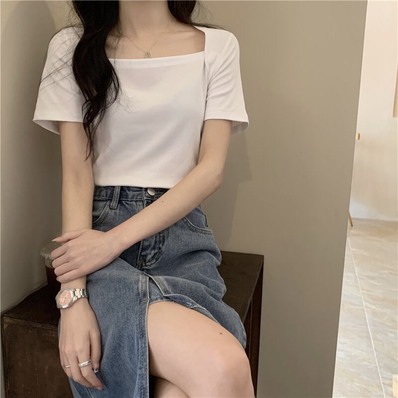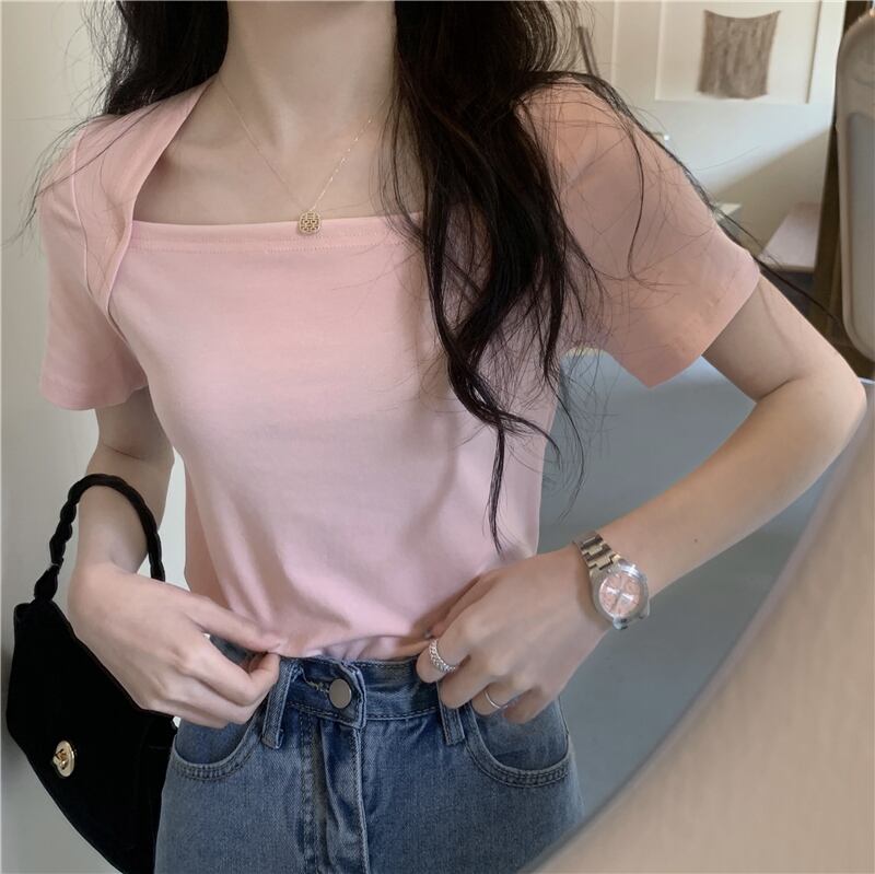 カラートップス NEWスリム薄手Tシャツ ピュア スクウェア コーデ Marchs45115272225