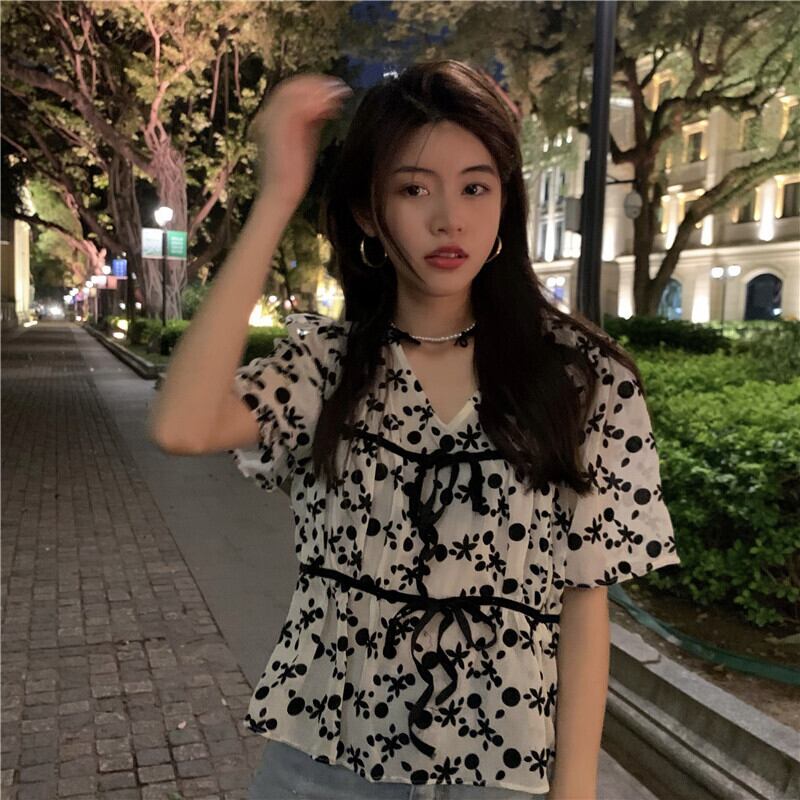 フローラルシフォンシャツ スプリング夏服ショートトップス 大人ガーリー スウィート キュート カジュアル 春物 夏物 花柄 コーデ Marchs44167240744