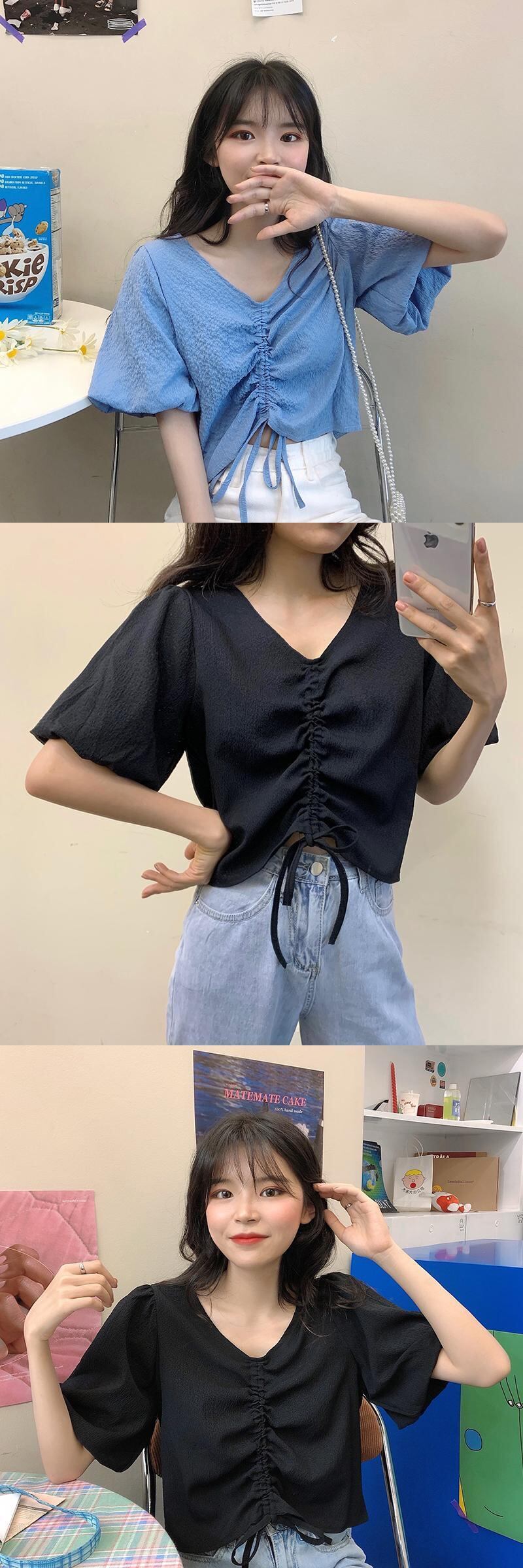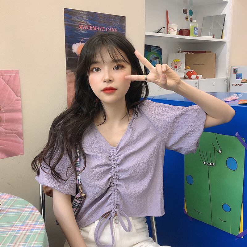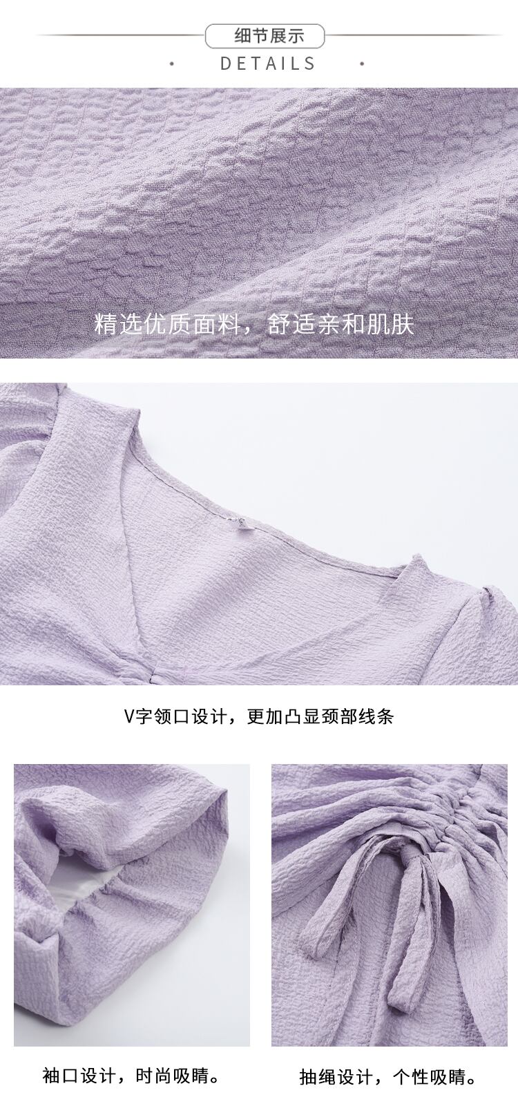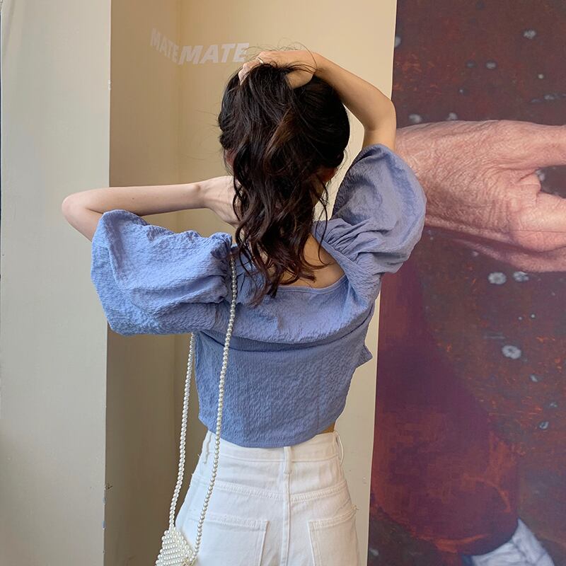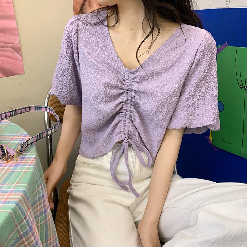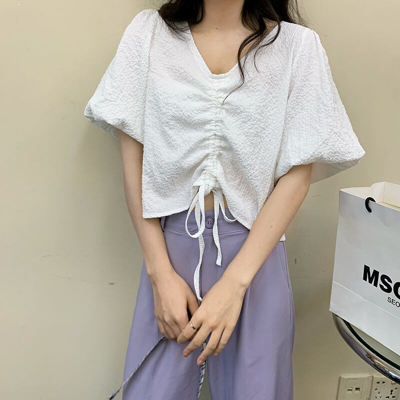 スタイルスリーブシャツ Vネックショートスタンダードトップス スプリング レトロ 大人ガーリー スウィート キュート カジュアル 春物 コーデ Marchs20729453948