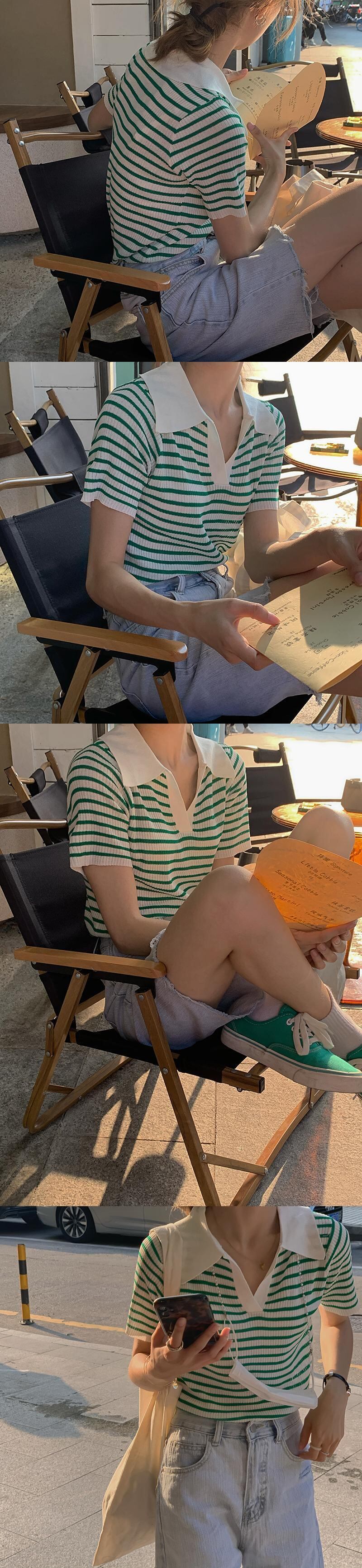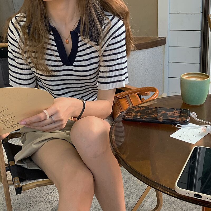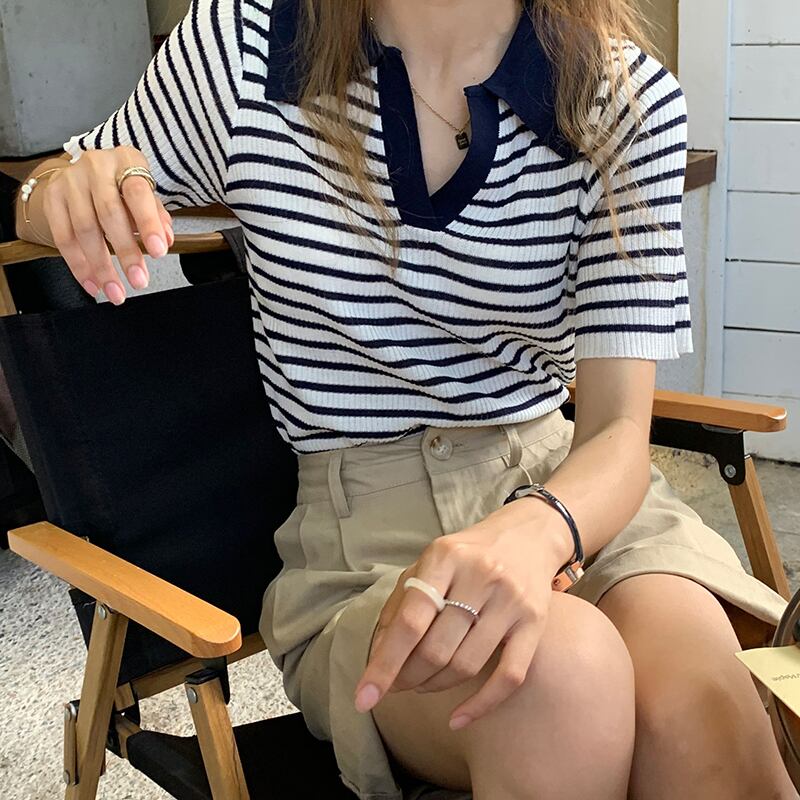 ニット夏服薄手スタイルカラーストライプTシャツゆったりトップス 大人ガーリー スウィート キュート カジュアル 夏物 コーデ Marchs79794625749
