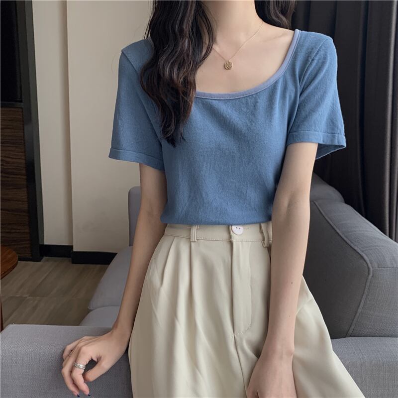 トップス Tシャツ夏服ルーズショートカラーブラック 夏物 スクウェア コーデ Marchs5565568706