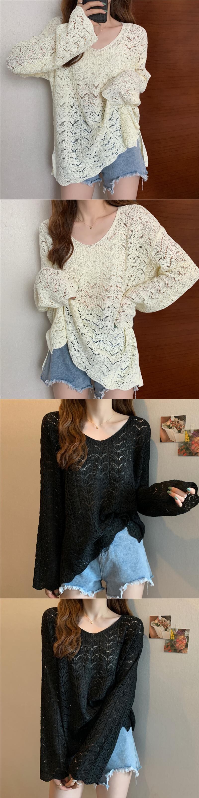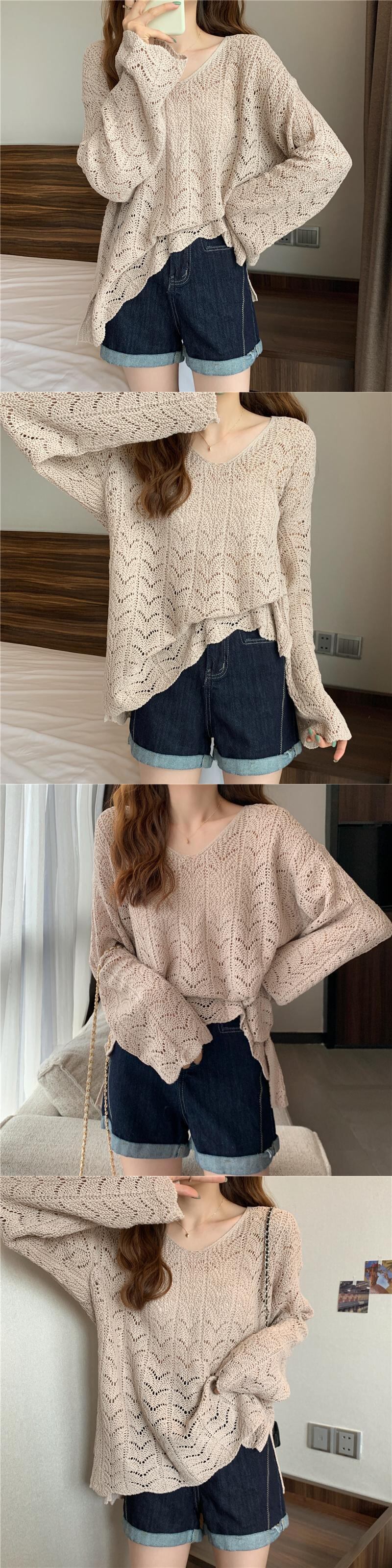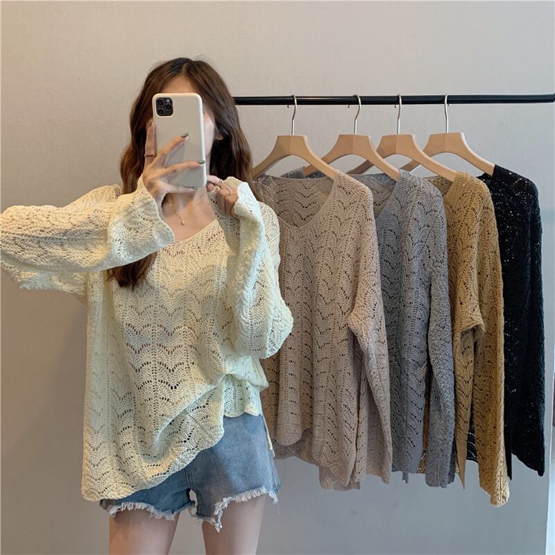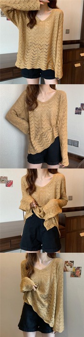 薄手ニット 夏服ルーズトップス Vネック ロング 夏物 長袖 コーデ Marchs29207141756