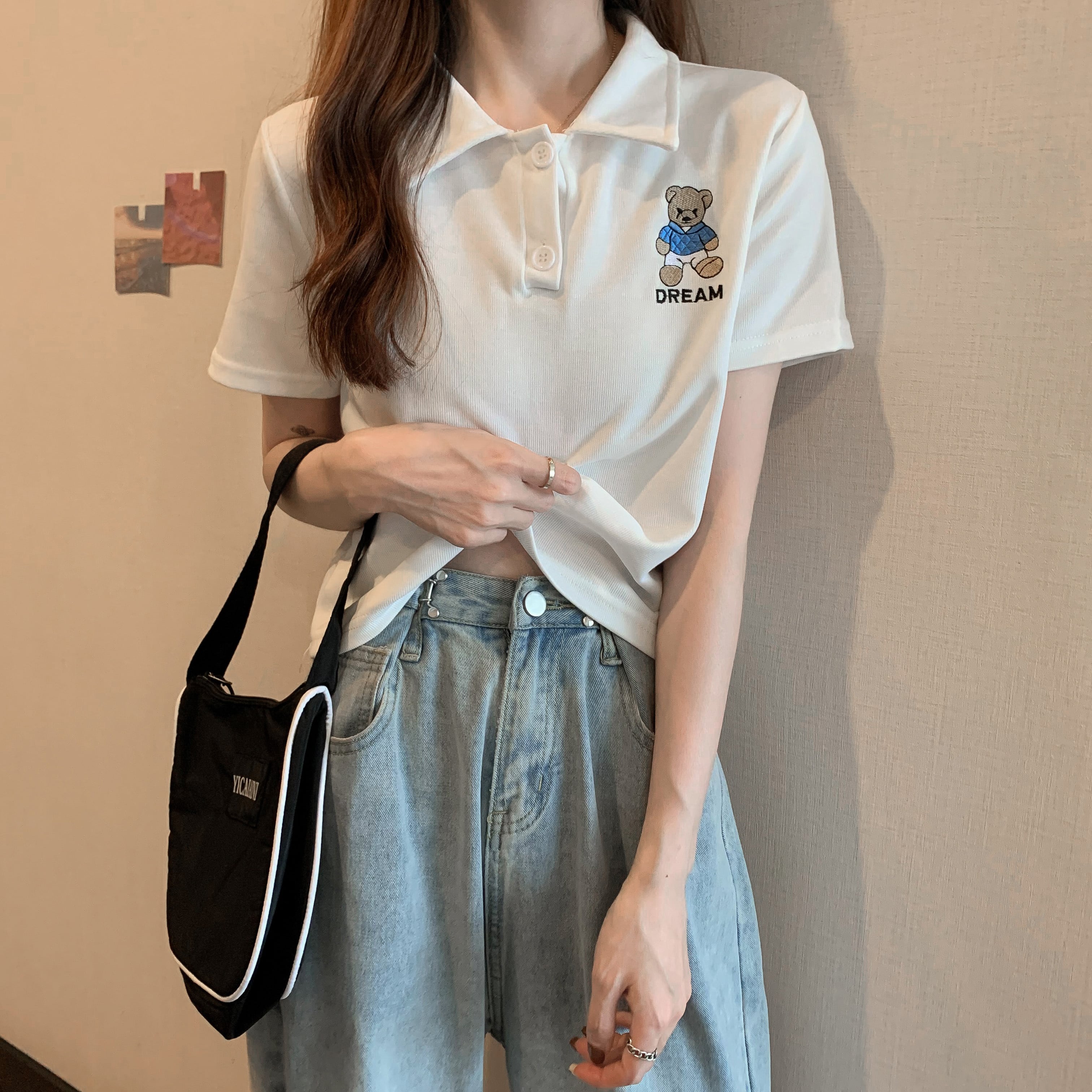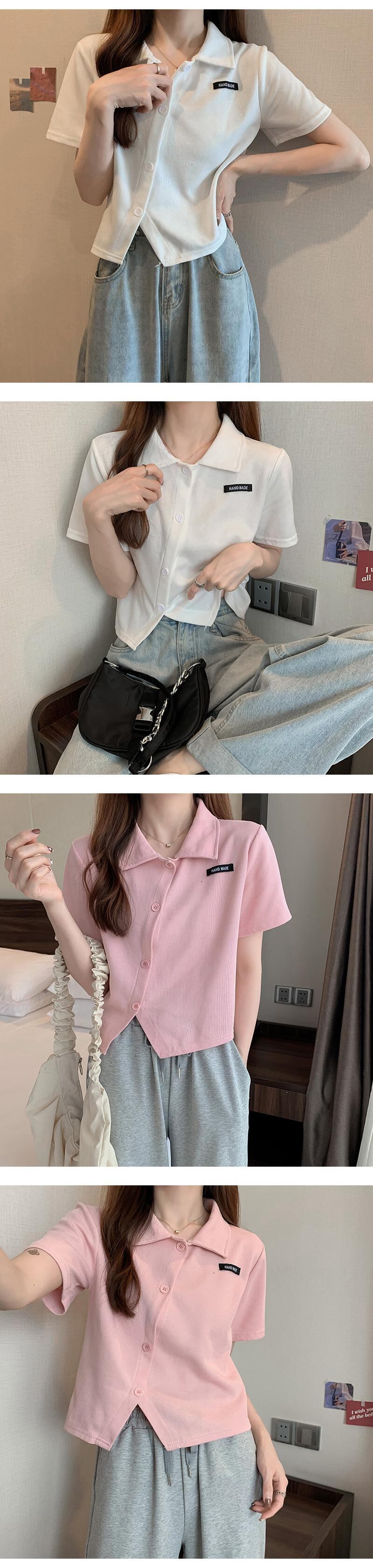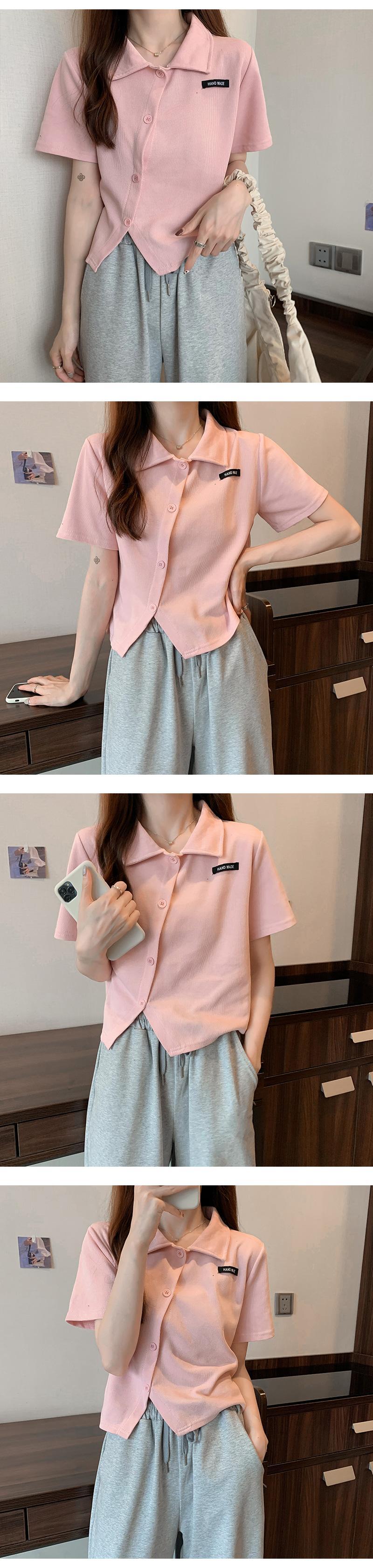 シャツ ショートボタンハイウェストウェストトップス 夏服薄手Tシャツ ピンク レッド 刺繍 夏物 ウエスト コーデ Marchs94260842413