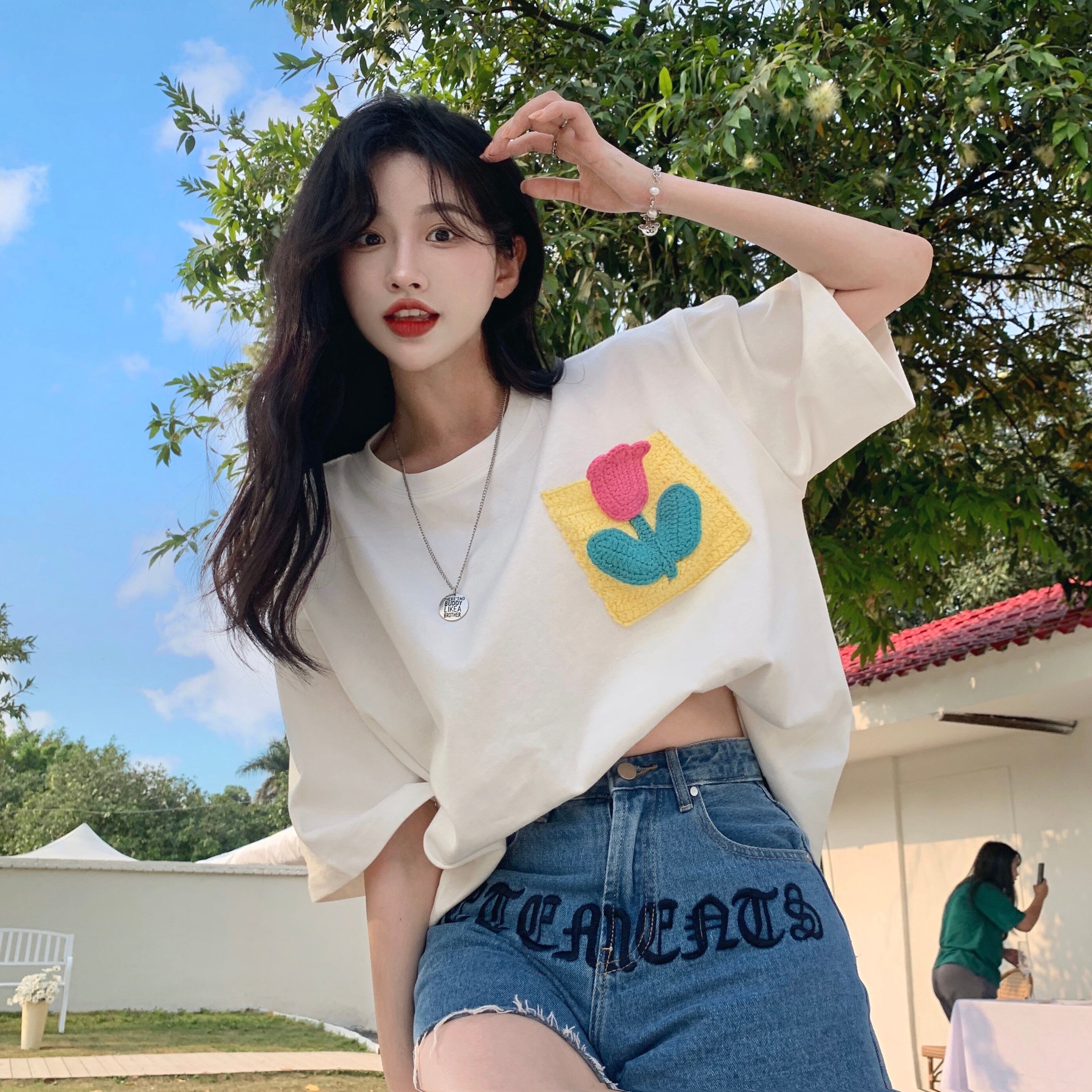 ホワイトTシャツ夏服韓国ファッションルーズNEWトップス オーバーサイズ コットン 夏物 スタイル コーデ Marchs56284769696