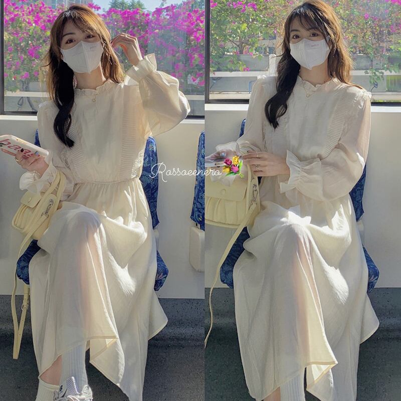 シフォンワンピースレディーススプリングゆったりロングスカート 春物 コーデ Marchs2603637445