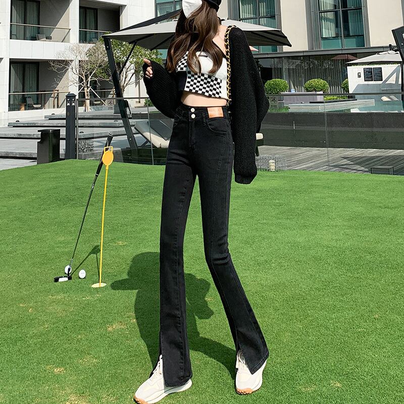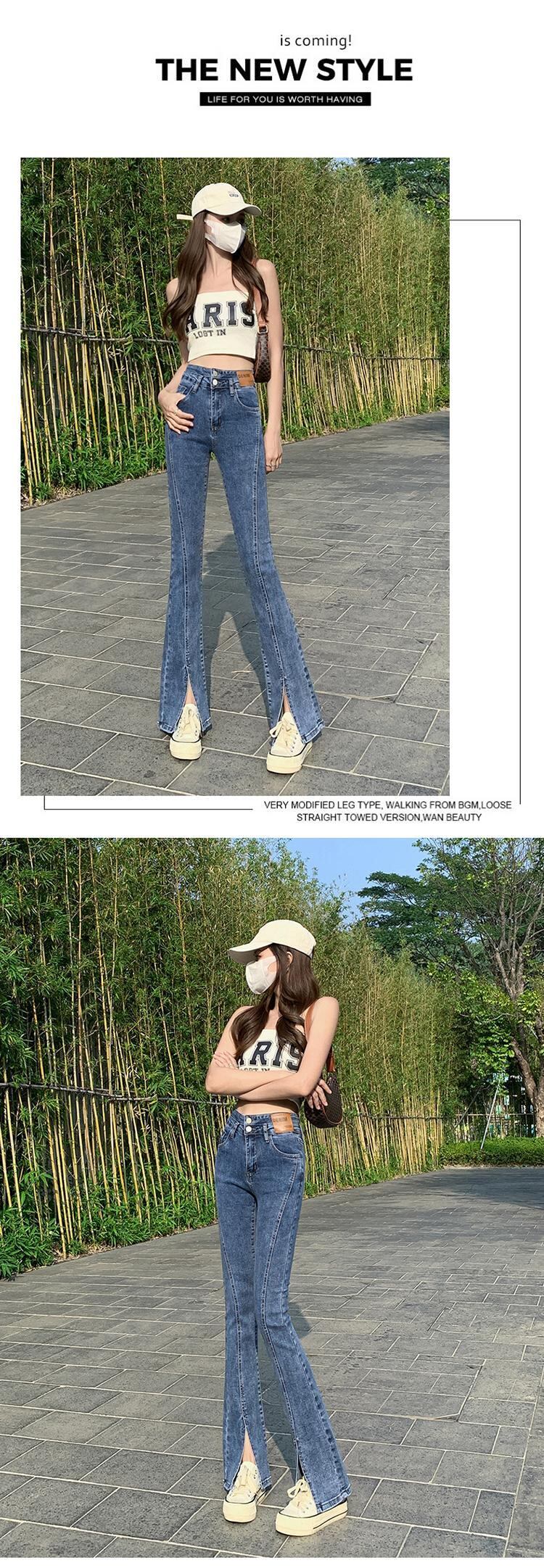 スリットジーンズ 夏服ウェスト薄手パンツ レッド 夏物 ウエスト コーデ Marchs64034696113