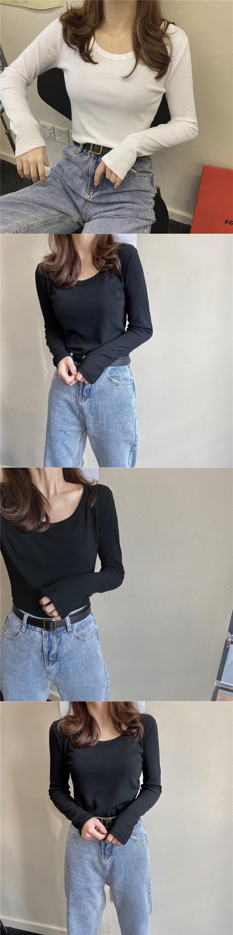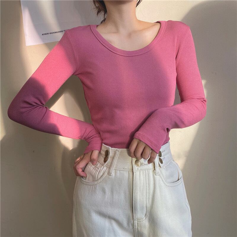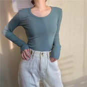 スプリング秋物Tシャツシャツ ゆったりラウンドネックスリムソリッド カラー韓国ファッショントップス NEW ロング 春物 オータム Oネック ソリッドカラー スタイル 長袖 コーデ Marchs46504920777