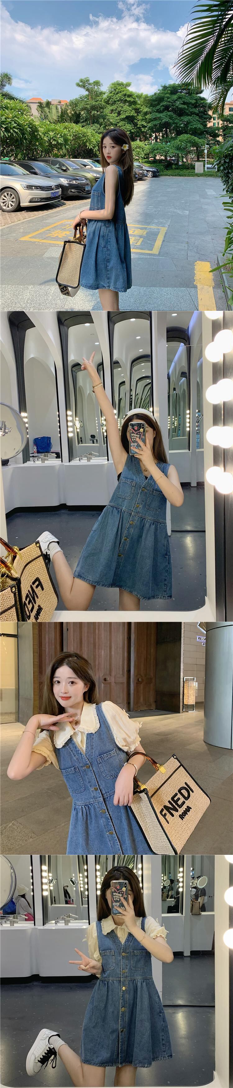 スタンダードVネックノースリーブスカート 夏服ワンピース レトロ 夏物 コーデ Marchs73891244107