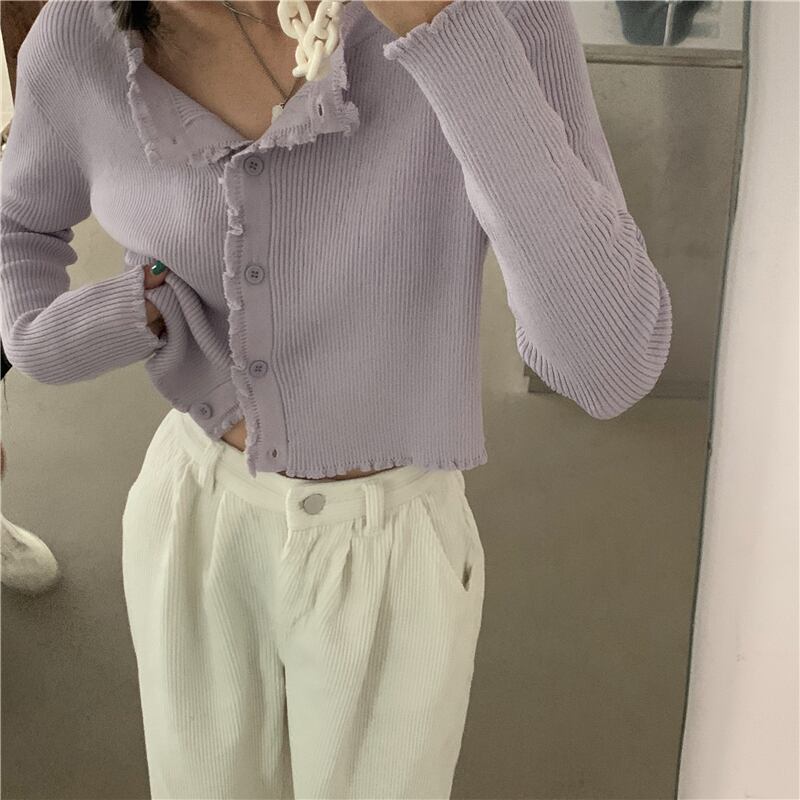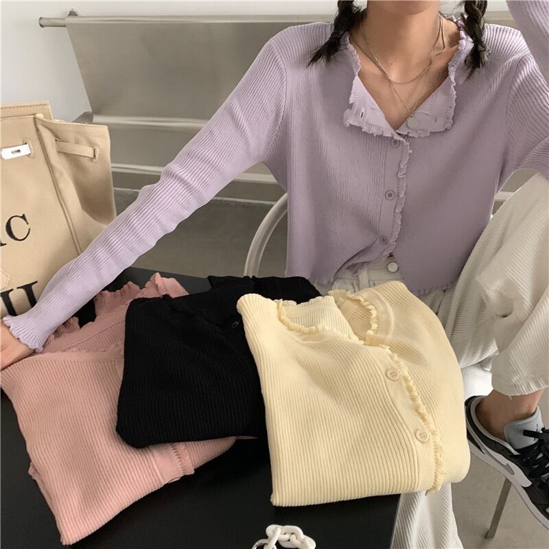 スタイル薄手カーディガンニットジャケット 夏服ショートブラウス ルーズトップス 大人ガーリー スウィート キュート カジュアル 夏物 パープル コーデ Marchs14839801535