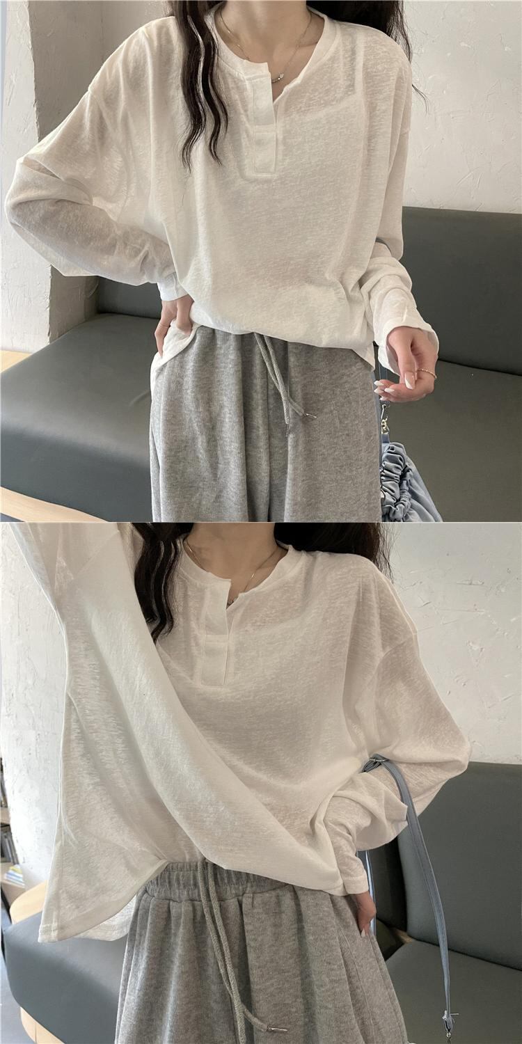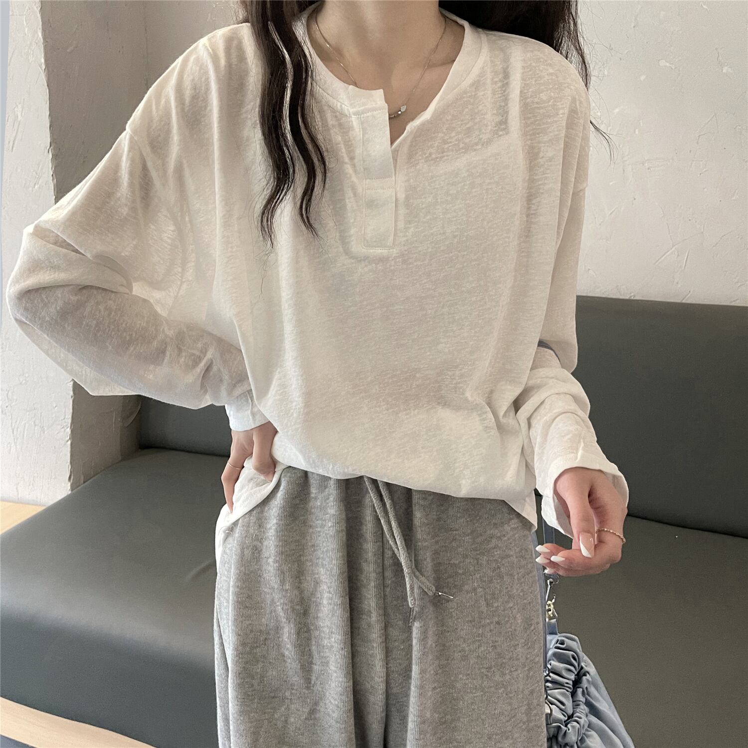 ホワイトブラウス スプリングルーズ薄手Tシャツシャツ トップス ロング 春物 シルク 長袖 コーデ Marchs3489172070