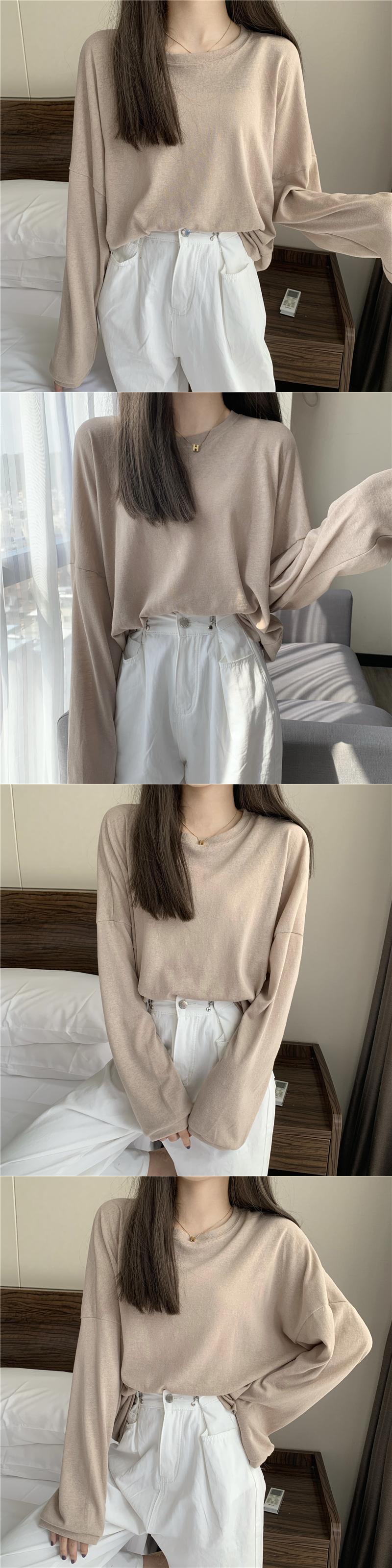 韓国ファッションTシャツ夏服薄手ブラウス ルーズトップス ロング コットン 夏物 パープル スタイル 長袖 コーデ Marchs92626762657