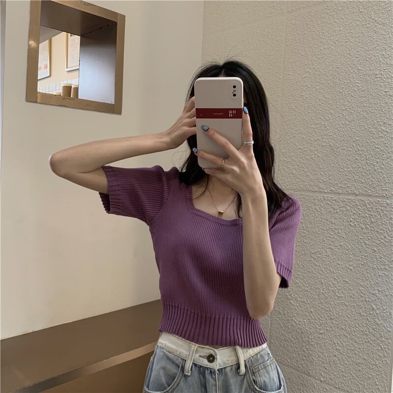 夏服Tシャツスリムフィットカラートップス ニットセーター 夏物 シルク スクウェア コーデ Marchs97815406818