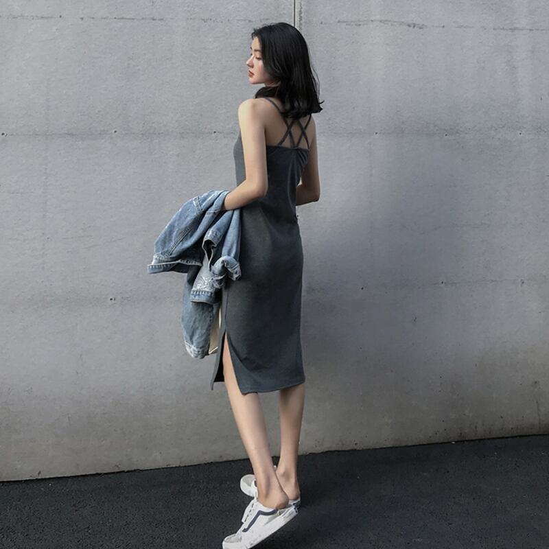 クロスノースリーブワンピース夏服ウェスト薄手ブラックスカート 夏物 ウエスト コーデ Marchs46297912739