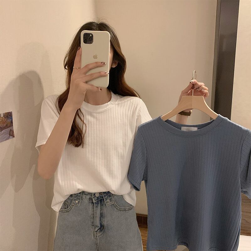 夏服ニットショートトップス ルーズホワイトTシャツレディース 夏物 シルク コーデ Marchs34820846647